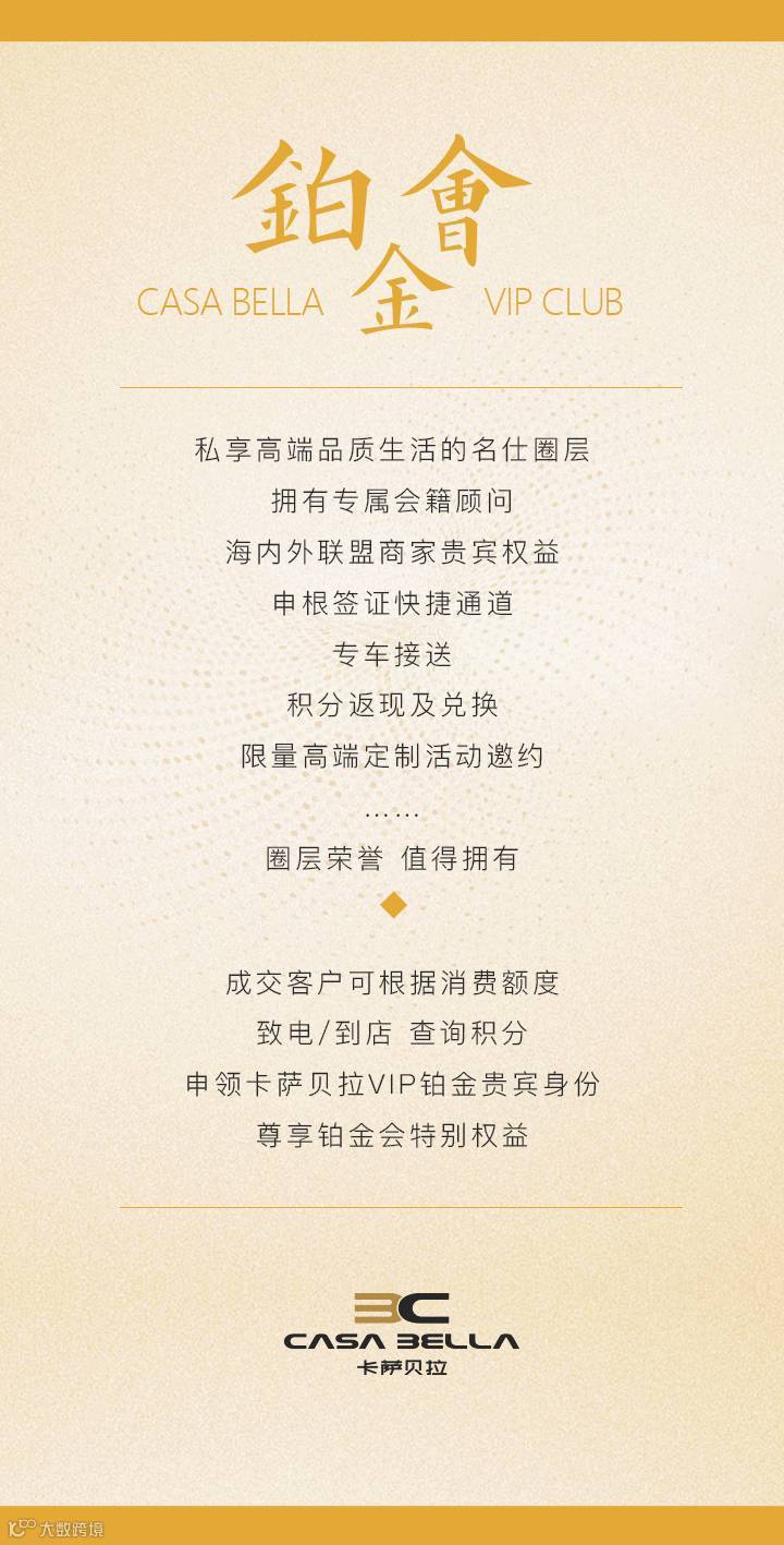 * 本次活动仅限卡萨贝拉VIP铂金会贵宾 *