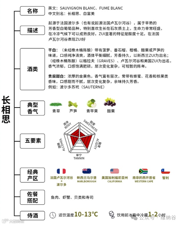 正如其名,长相思生命力非常旺盛,在冷凉气候下可以成熟良好,喜欢石灰质土壤,其显著的酸度和独特的野性芬芳,让它的识别度变得很高。