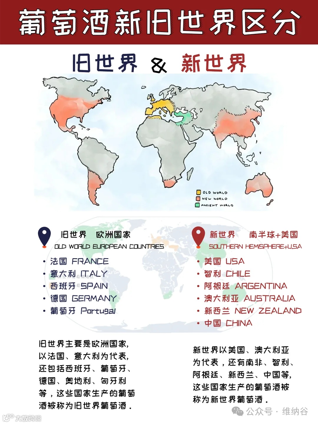 新、旧世界葡萄酒的概念最先出自英国葡萄酒作家休•约翰逊 (Hugh Johnson)。那么新旧世界分别指什么,它们有何区别?旧世界葡萄酒的品质一定比新世界好吗?