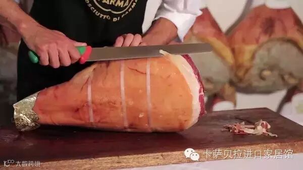 有时候我们在超市看到各种火腿的标签会比较疑惑,一堆奇怪的单词傻傻分布清楚。意大利语中 Prosciutto 就是火腿的意思,但并不是所有的意大利火腿都是帕尔玛火腿!帕尔玛火腿有它的专有名词,那就是“Prosciutto diParma”,本质上来讲,欧洲很多火腿,具体的差异都是以地理来区分的,大约是原产地保护吧。总之,能够通过审核、在火腿皮上盖上小皇冠印章的正宗帕尔马火腿,只生产自意大利北部的罗马涅地区或者帕尔玛省内的南部山区。(地理不好根本就记不住啊,只需记得,盖上小皇冠的“Prosciutto diParma”最地道就好。)