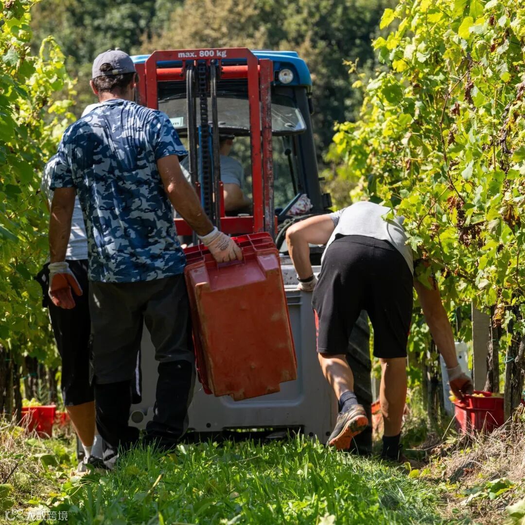 同时,也会根据自身酒庄种植园地势情况和酒庄葡萄酒品质标准要求,来决定是人工采收还是机械采收,一般为了追求高品质葡萄酒的酒庄会选择人工采收,以轻柔的方式和人工挑拣的方式,获取质量最好的葡萄果实。