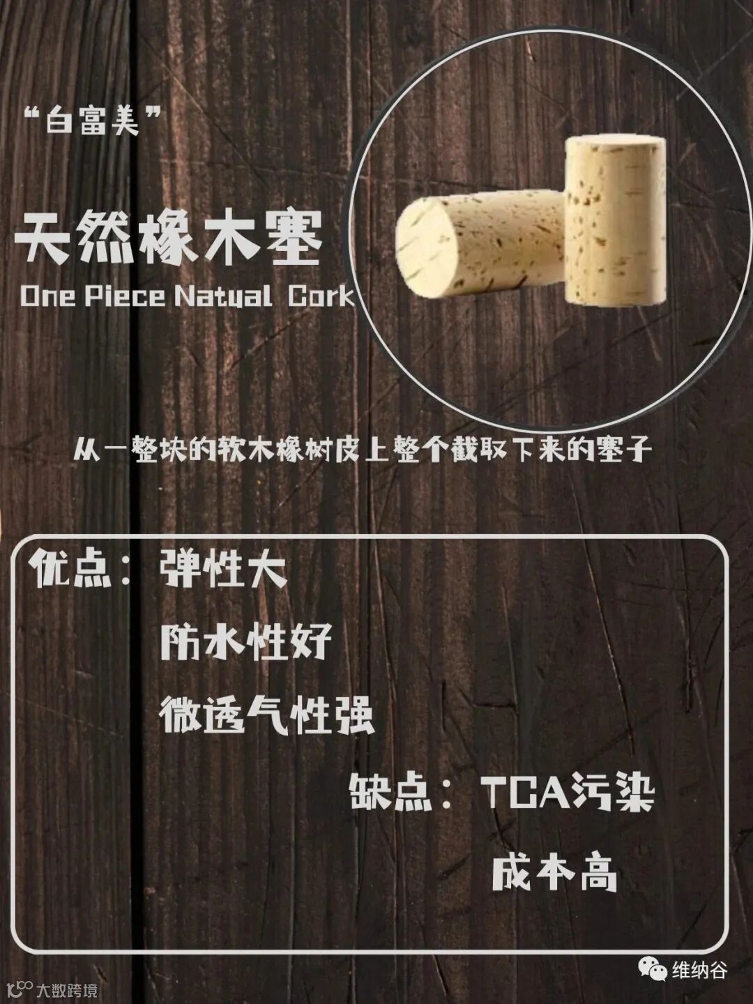 Tips:好的橡木塞一定程度可以反映葡萄酒价格的高低,但橡木塞不能完全代表葡萄酒品质的好坏,毕竟好酒一定配好塞,但好塞里面装的未必都是好酒。