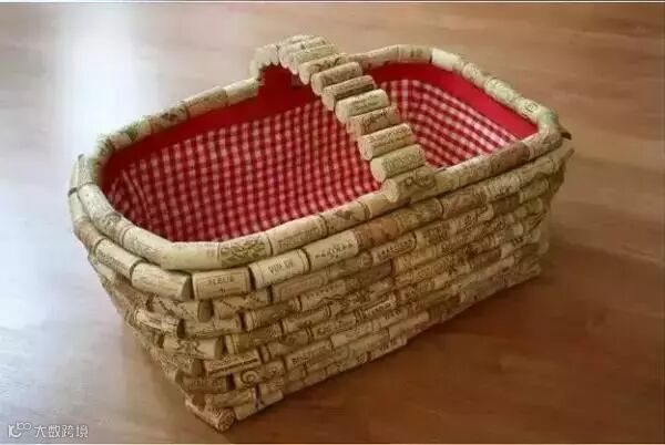喝完红酒之后,可以用万能胶将木塞粘在篮子上,DIY文艺气息的的篮子。