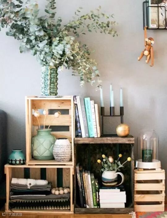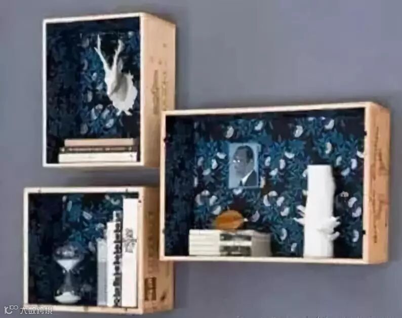 几个木箱整齐的悬挂在墙上,家中顿时充满自然的气息。还可以选择与家中墙壁颜色相近的好看布料对木箱内部进行装饰,这样的装饰可以增加多样性和温馨感