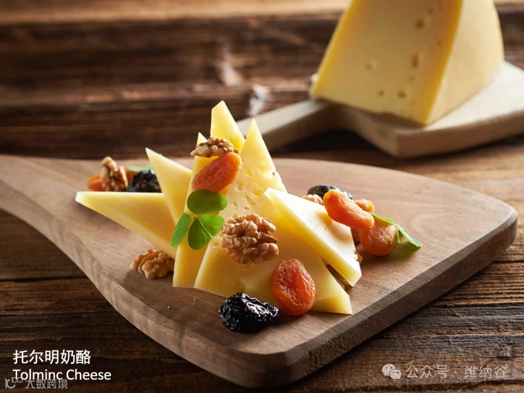 产自索察河谷(Soča Valley)下游,托尔明奶酪 使用新鲜牛奶经过长时间的发酵和熟化而制成,外观呈淡黄色,质地坚实,香味浓烈,口感丰富,甘甜丝滑。