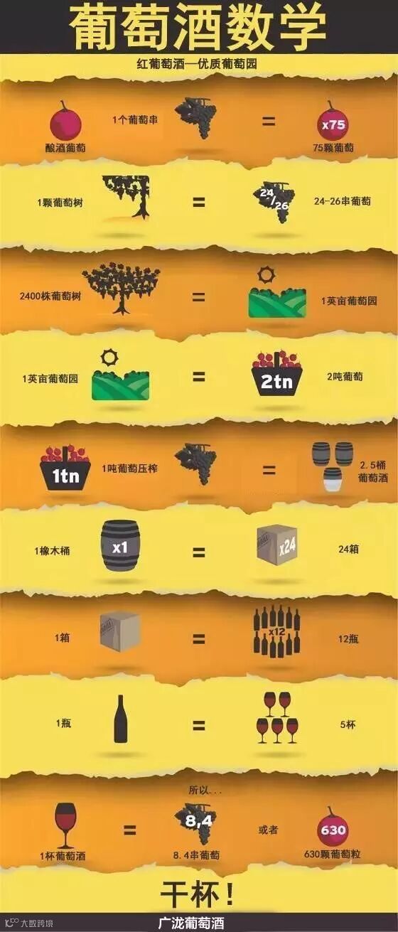 导读:葡萄酒平常喝得多,但是你知道酿制一杯葡萄酒需要多少葡萄?你是否知道这些葡萄酒数学公式?
