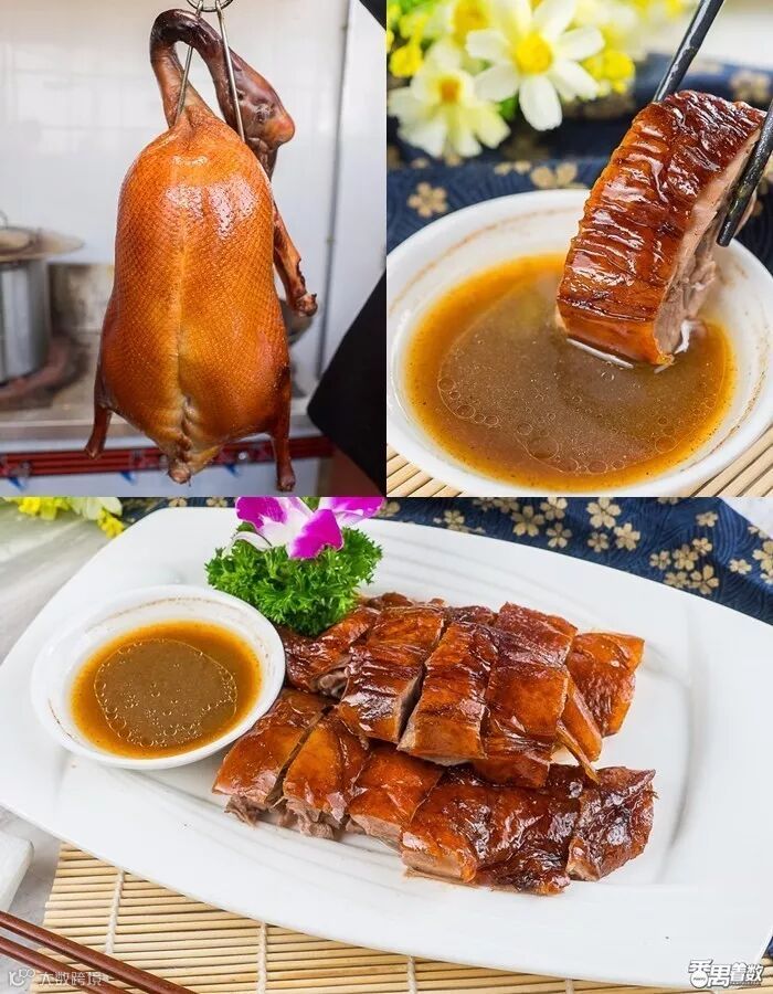 招牌烧鹅▶厨师刀起刀落,切好的烧鹅件件均匀。烧鹅色泽棕亮,肥瘦均匀,皮脆肉嫩!