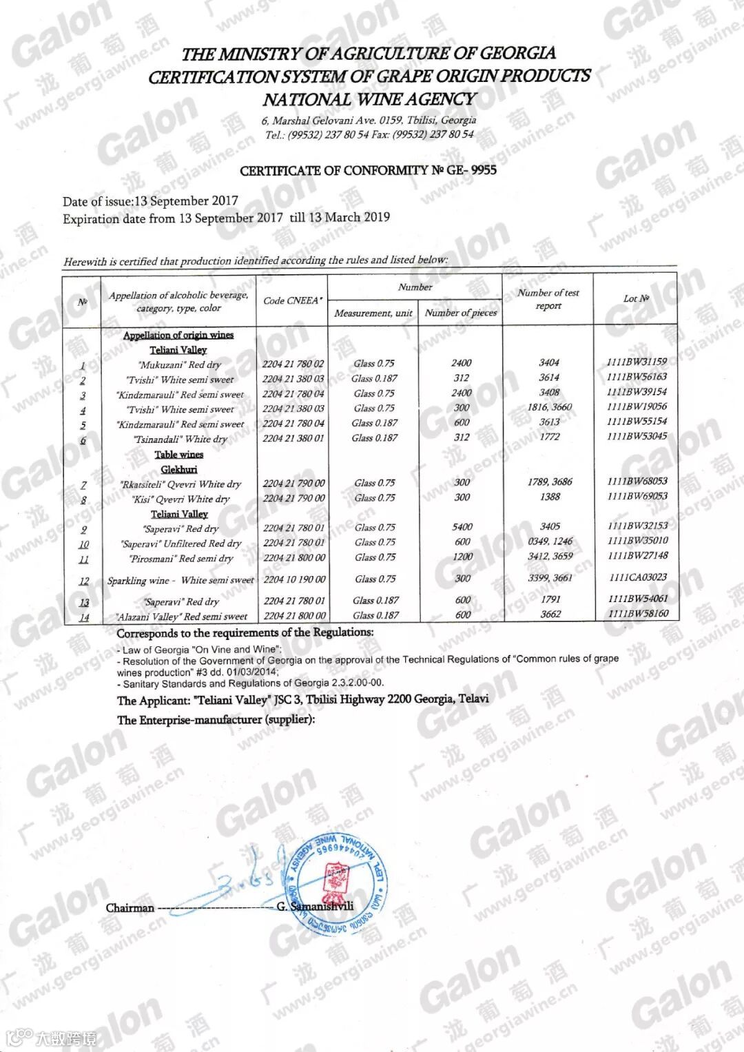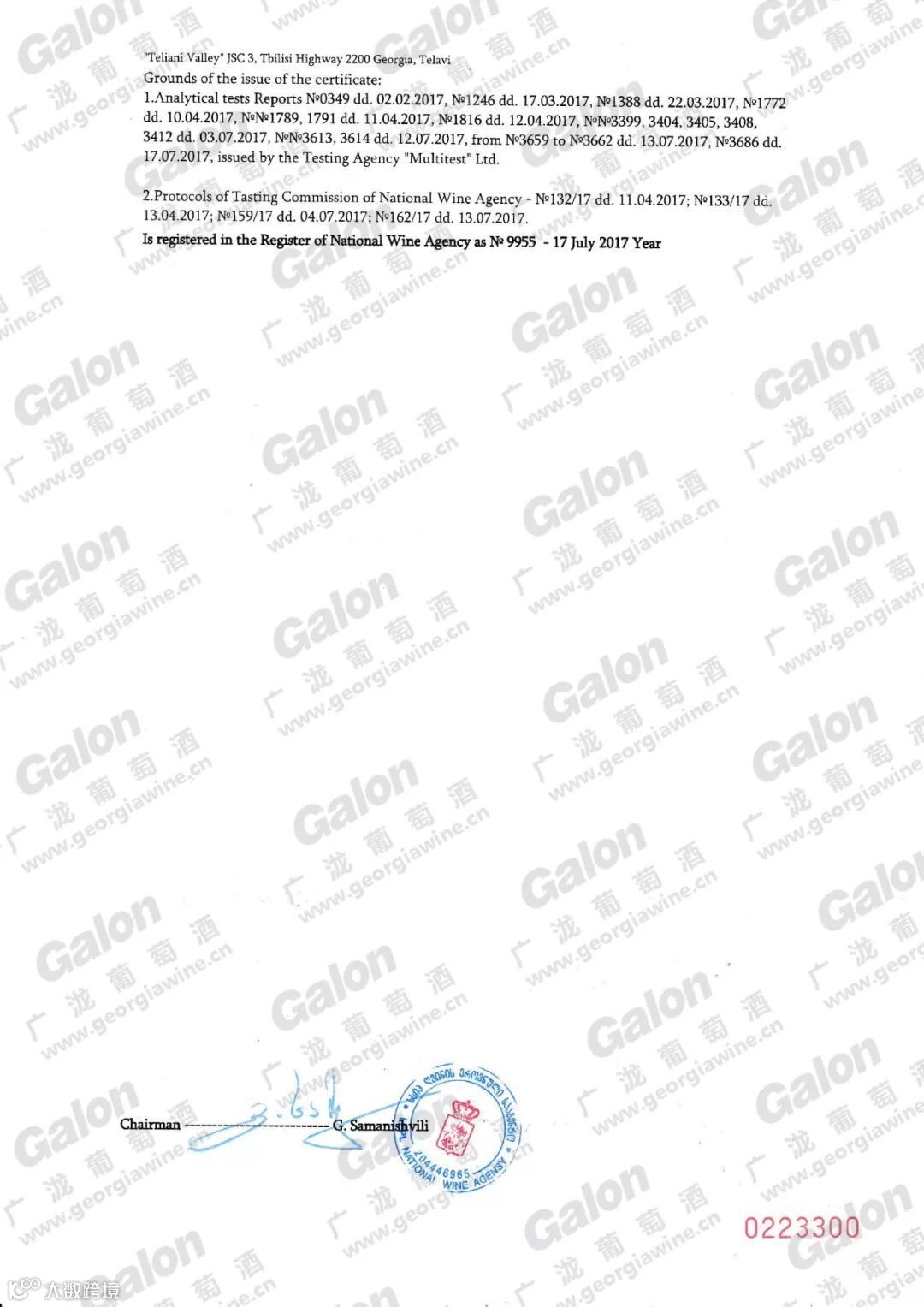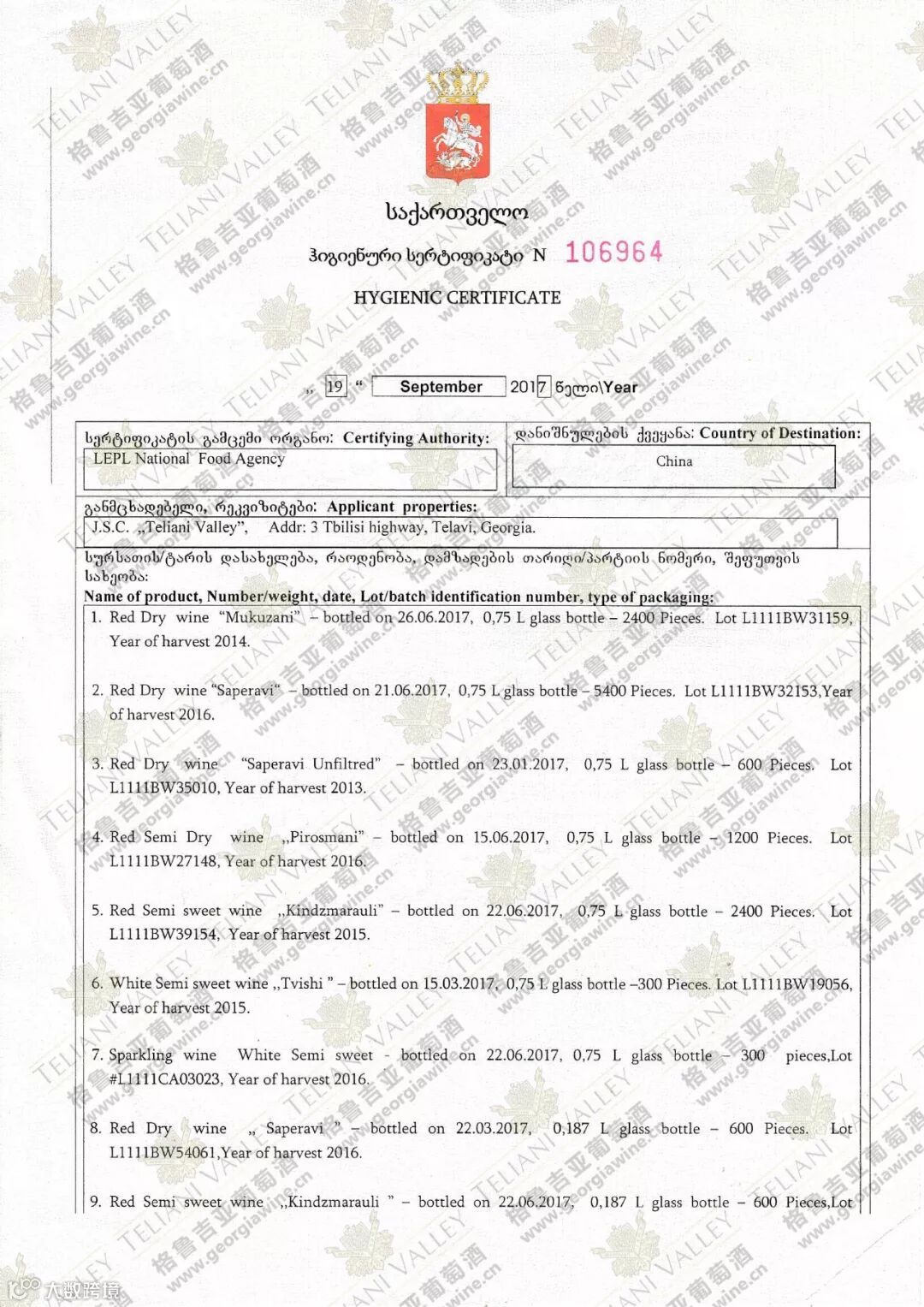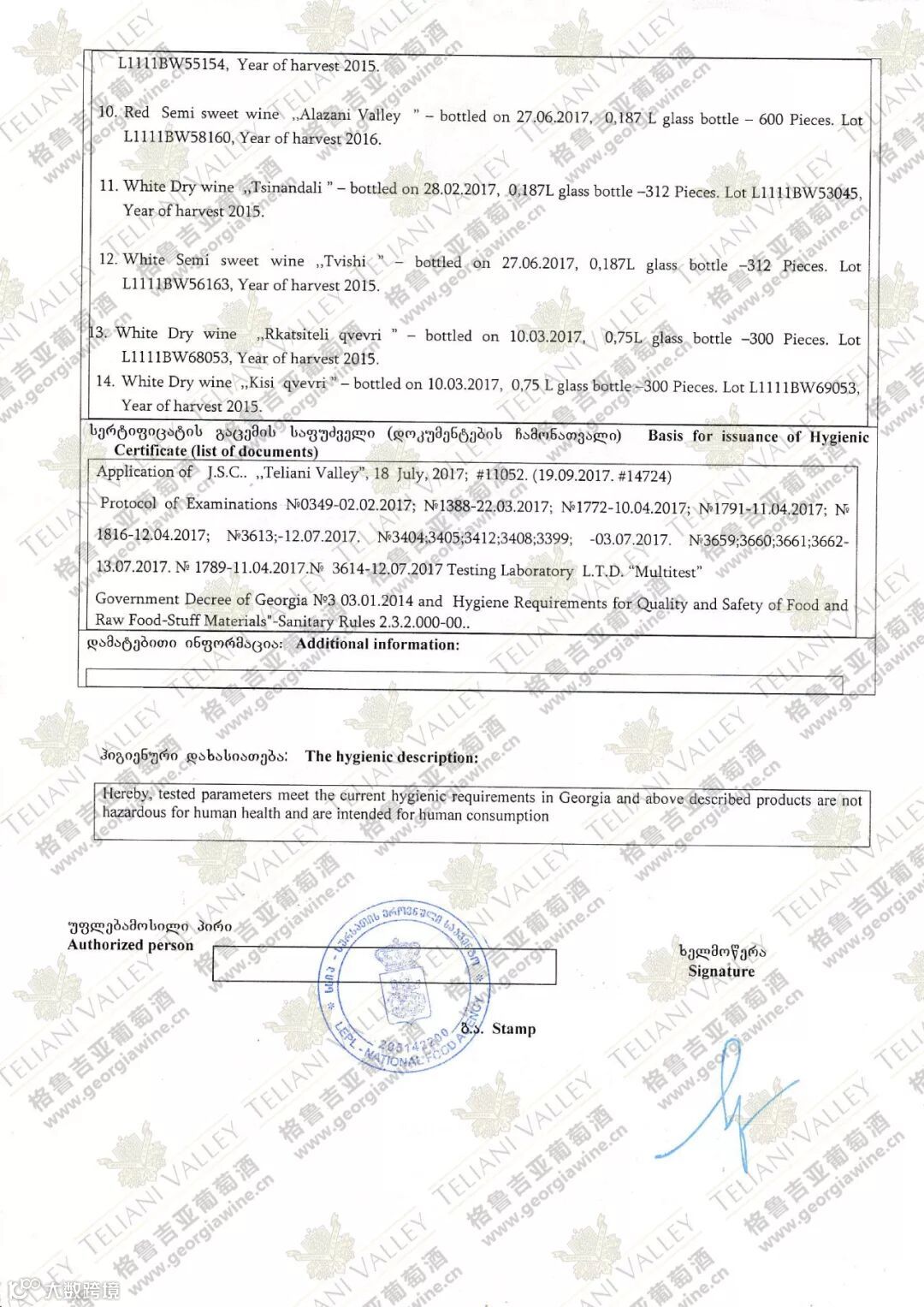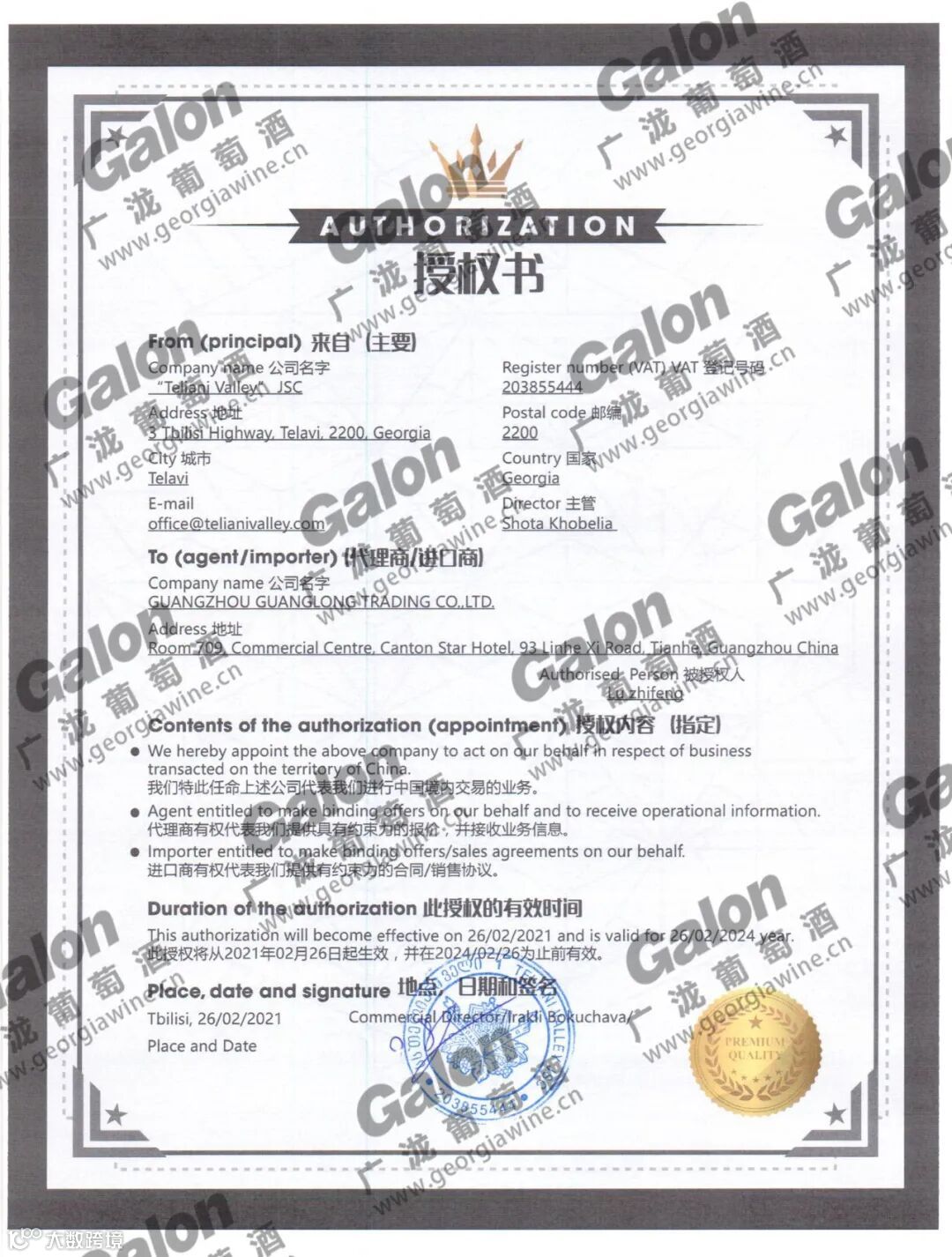 TELIANI VALLEY授权书