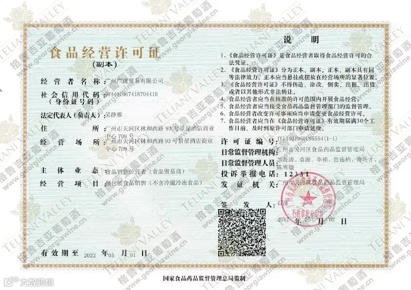 经过长时间国外考察,2016年确定与格鲁吉亚TELIANI VALLEY JSC蒂里阿尼山谷酒庄合作,启动格鲁吉亚原瓶原装进口葡萄酒新业务,成为TELIANI VALLEY授权中国区一级合作伙伴,广泷立志把最优质的格鲁吉亚进口葡萄酒带到中国的每个城市,大力推广格鲁吉亚历史悠久的葡萄酒文化。