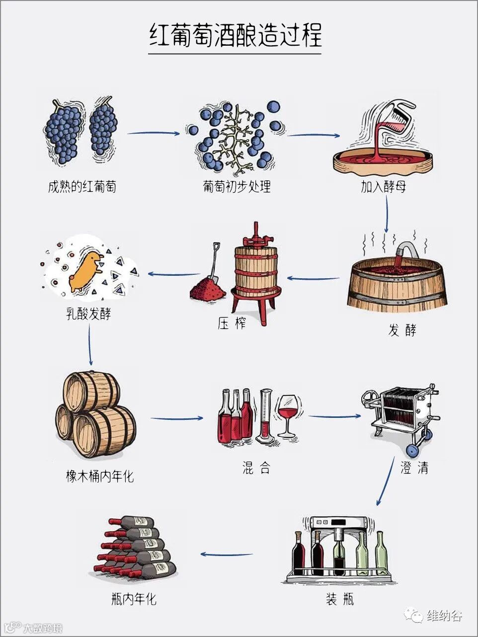 葡萄果实若要转变为瓶中美酒,过程中大致需要经历采摘、破碎、压榨、发酵、陈年和装瓶等步骤,但依据葡萄酒种类、酿造风格和工艺的不同,具体的步骤会相应进行调整,此文会简答说一下葡萄酒究竟是怎么酿成的,希望大家明了!