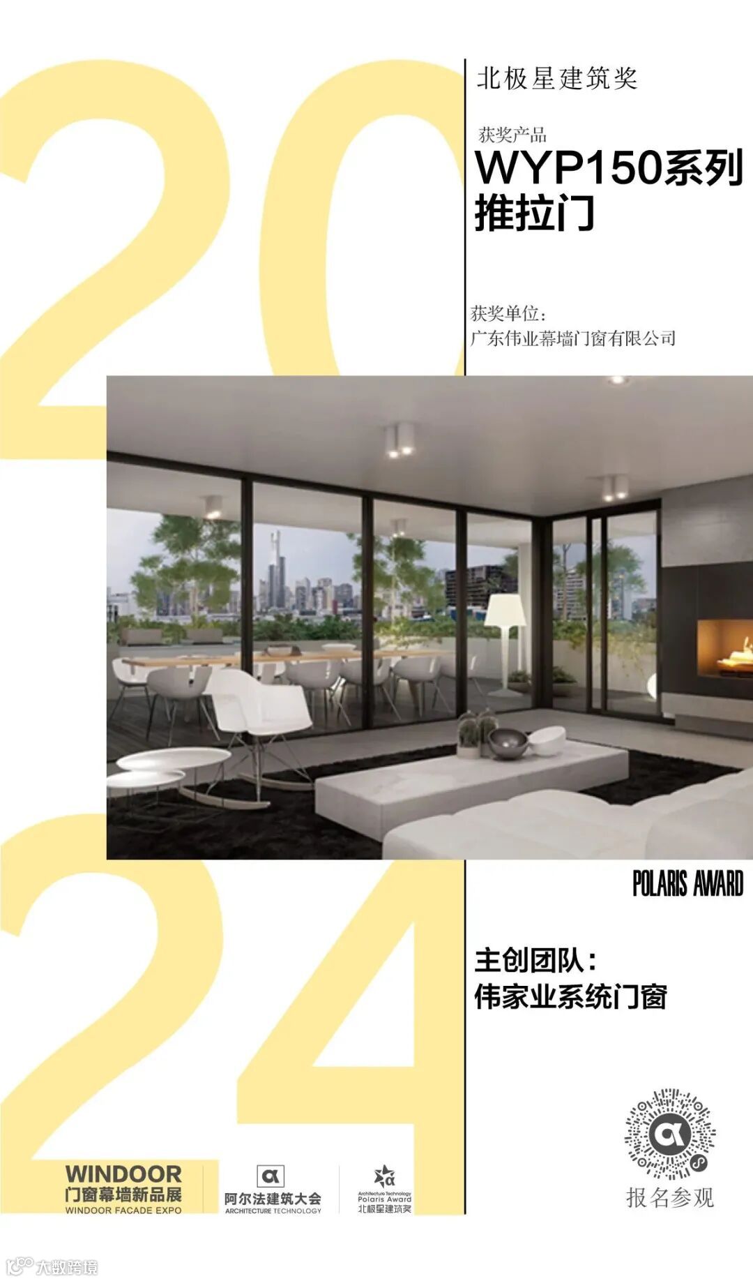 1月25日,被誉为中国建筑行业“诺贝尔奖”的北极星建筑奖正式发布第十届获奖名单。伟家业系统门窗年度创新产品WYP150系列推拉门,凭借超低能耗的产品定位,兼顾高颜值和性能实用的产品设计,经过多轮严格筛选,以及建筑行业各领域权威代表专业细致评审后,在一众佳品中脱颖而出,斩获「2023-2024年第十届北极星建筑奖」!