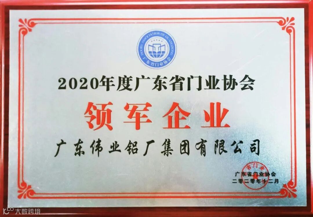 大会上,广东省门业派出2020年度行业榜单。广东伟业铝厂集团有限公司与另外26家企业一同获评2020年度广东省门业协会领军企业。