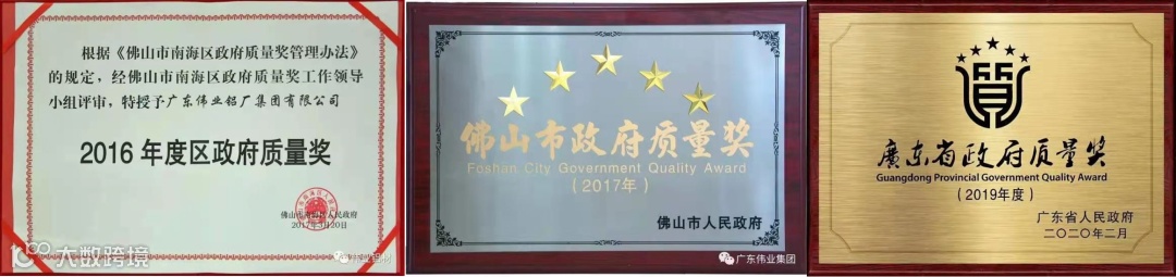 近30年铝途,质量,始终是支撑伟业品牌前行的驱动力,让更多伟业高品质的铝产品走进千家万户,从南海区政府质量奖,到佛山市政府质量奖,再到广东省政府质量奖,伟业集团实现了质量“三连跳”,进一步推动品牌价值提升。