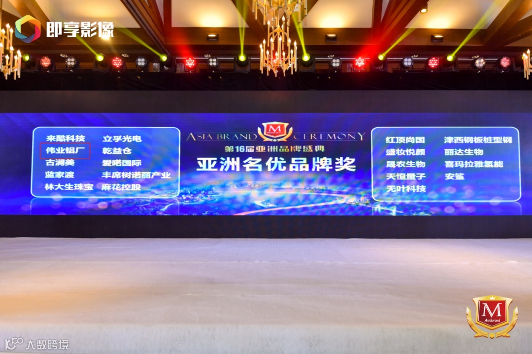 9月28日,第十六届亚洲品牌盛典在海口观澜湖隆重举行,广东伟业集团凭借着强大的企业实力与优异的品牌美誉度,斩获亚洲名优品牌。这是品牌实力的彰显,更是中国铝型材企业以质量作为品牌力量牵引品牌国际化的战略实施。