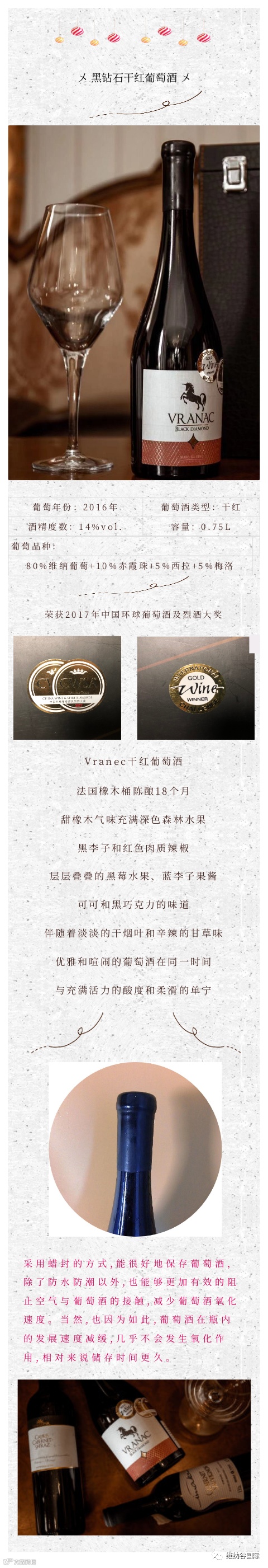 点评:混酿型干红葡萄酒,富有多种葡萄品种类型的特点,单宁口感柔滑,是羊肉及牛肉等配餐的完美搭配
