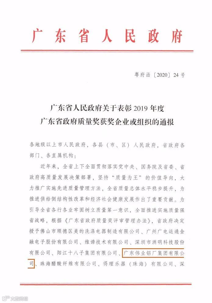 一直以来,在政府的引领下,广东伟业坚持全面贯彻落实党中央、国务院及省委、省政府高质量发展决策部署,坚持“科技兴伟业,质量创名牌”的价值导向,大力推行实施卓越绩效管理方法,为推进供给侧结构性改革和经济社会健康发展作出了重要贡献。在2016年、2017年相继获得南海区政府质量奖、佛山市政府质量奖之后,再次荣获2019年度广东省质量奖最高荣誉!