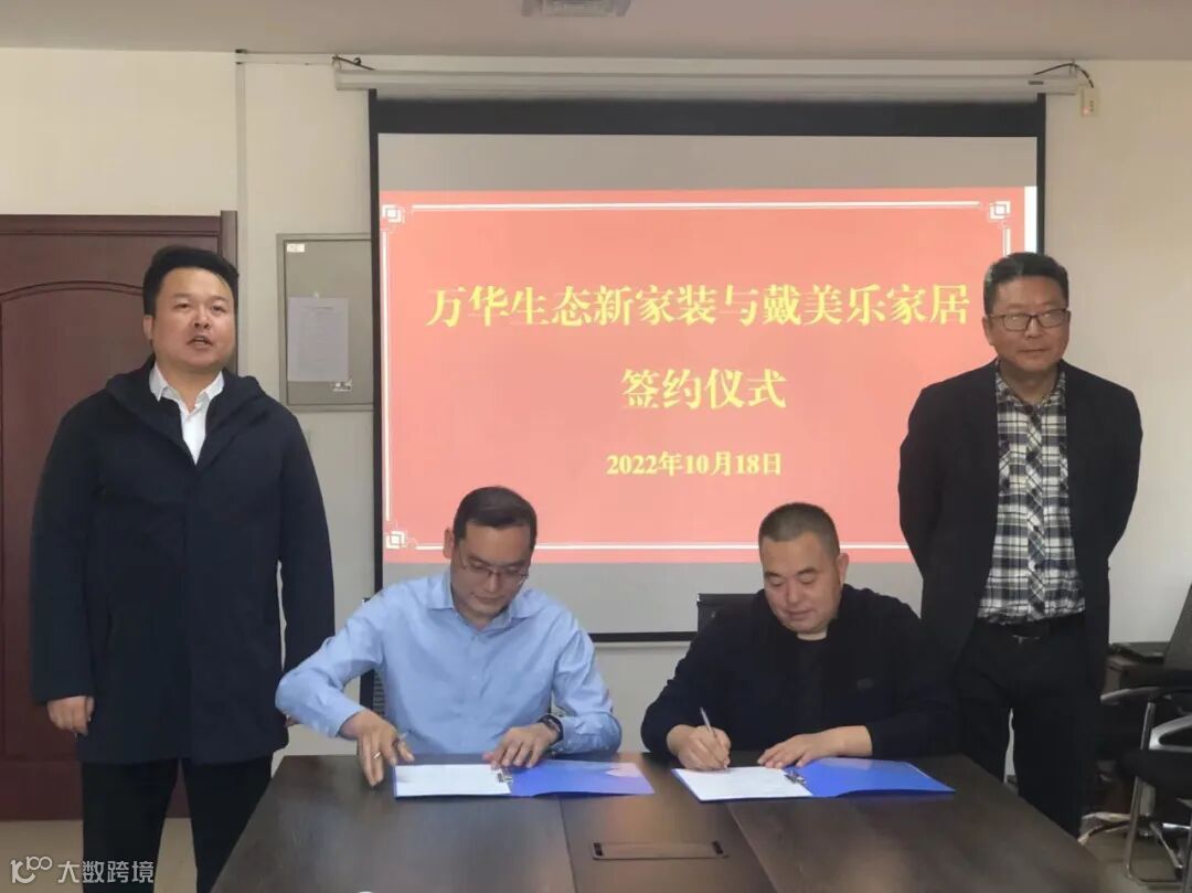 10月18日,万华生态新家装与戴美乐家居举行签约仪式,万华生态集团总裁于文杰,万华生态新家装总经理牛胜利,临沂产业控股集团董事长曹书川,广东赛尔日盛家居董事长周文明等参加。