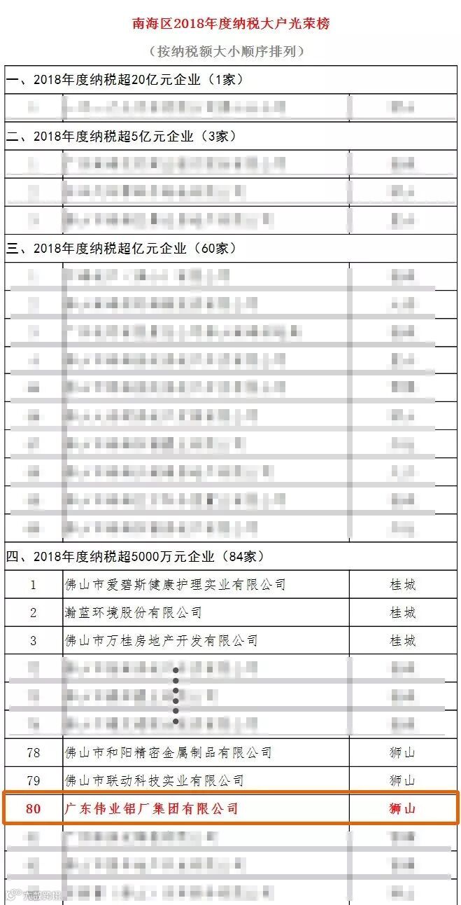 其中,伟业铝材获得"2018年度纳税超5000万元企业”荣誉称号,这是对广东伟业集团主动承担社会责任、规范、依法诚信纳税的肯定。