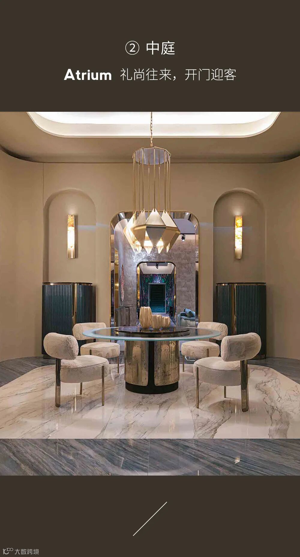 Atrium 中庭是古罗马住宅中的常见元素,为室内提供光线和新风,与中国南方的天井有异曲同工之妙,而现在,Atrium 又可以被解读为玄关,它是住宅的入口,像一个滤器,隔离又连接着公共和私人生活两个世界。