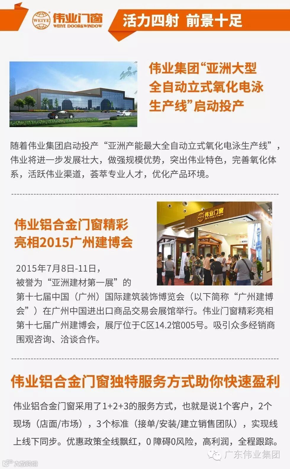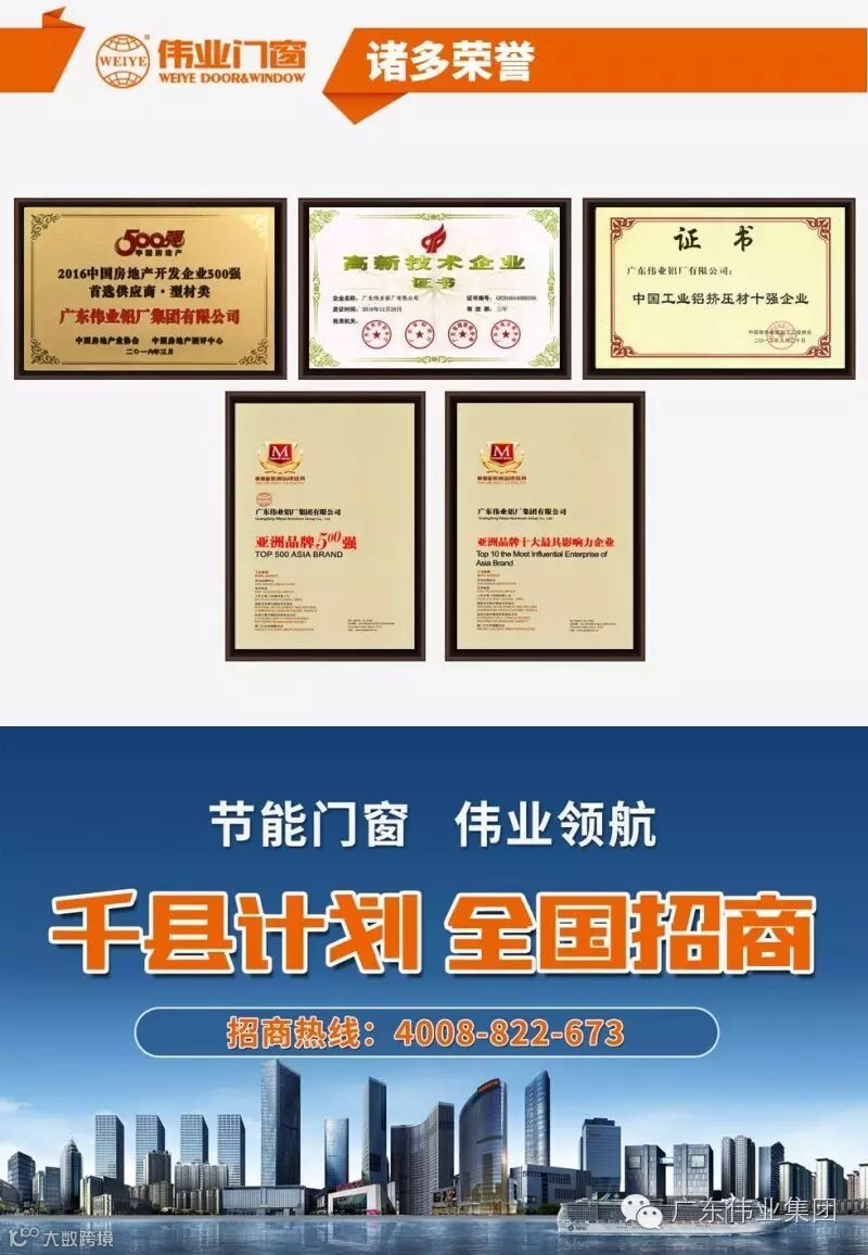 广东伟业集团,旗下品牌【伟业牌铝材、伟业门窗】是亚洲品牌500强、亚洲十大影响力品牌、中国工业铝挤压材十强企业、2016年中国房地产开发企业500强首选供应商。关注我们获得更多新鲜的行业资讯,还有更多精彩
