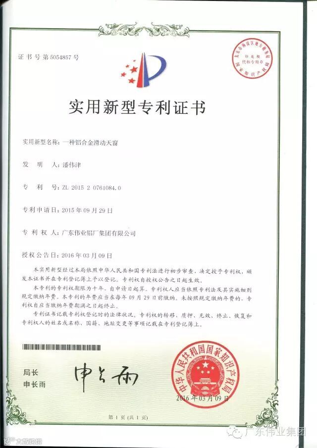 您享用的是一种铝合金滑动天窗专利