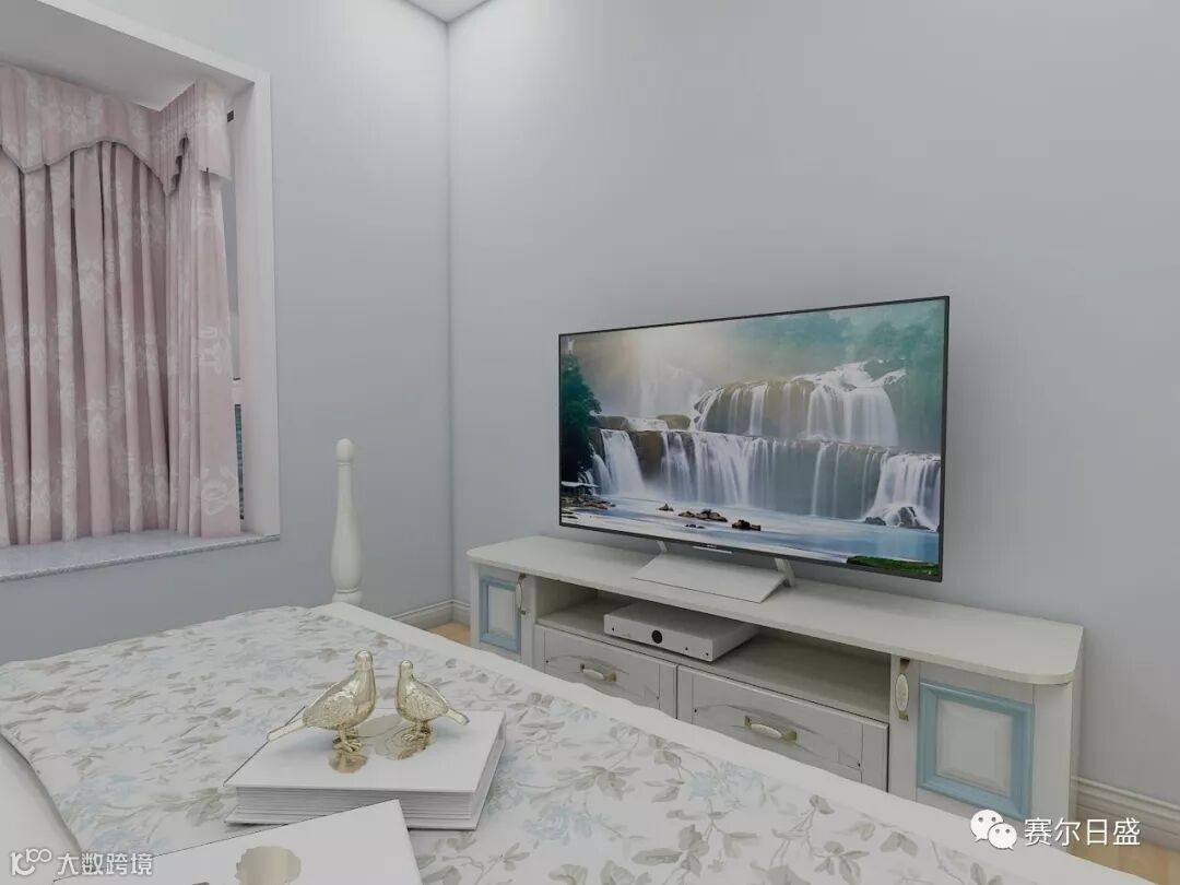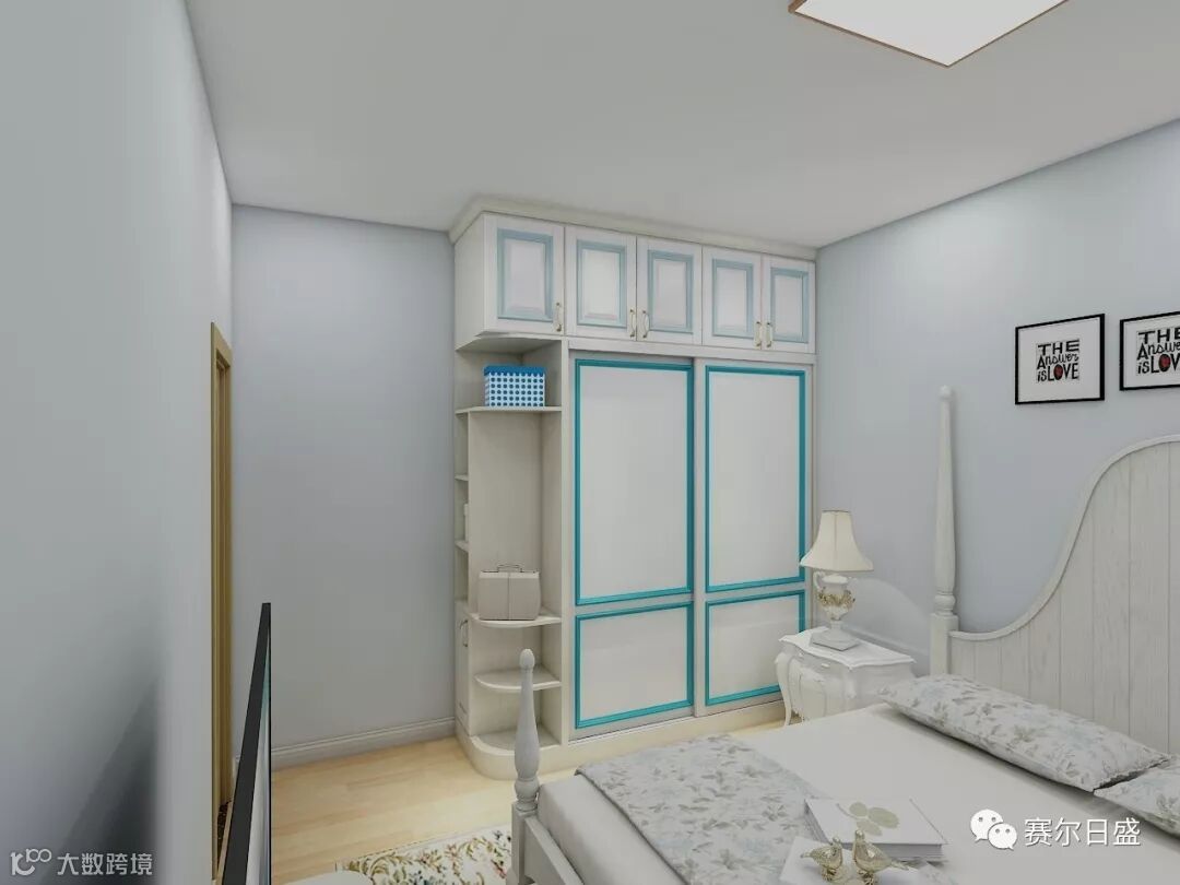 决定居室氛围的因素不光只是色彩,质感、设计也同等重要,环保雅白木料,搭配淡蓝色,流畅唯美欧式线条,都凸显卧室的舒静。