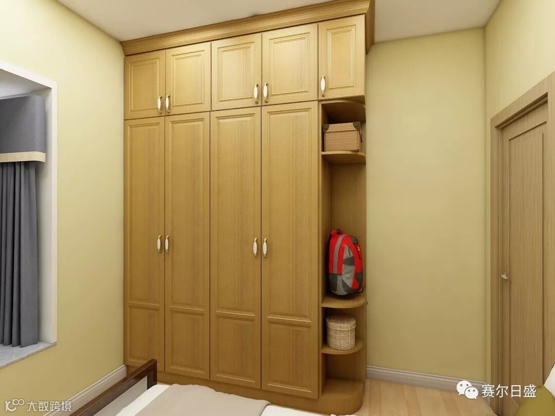 长辈房衣柜设计要尽量保证老人的安全,衣柜的边角要尽量圆滑,以免老人取用衣物时不小心划伤或磕碰。