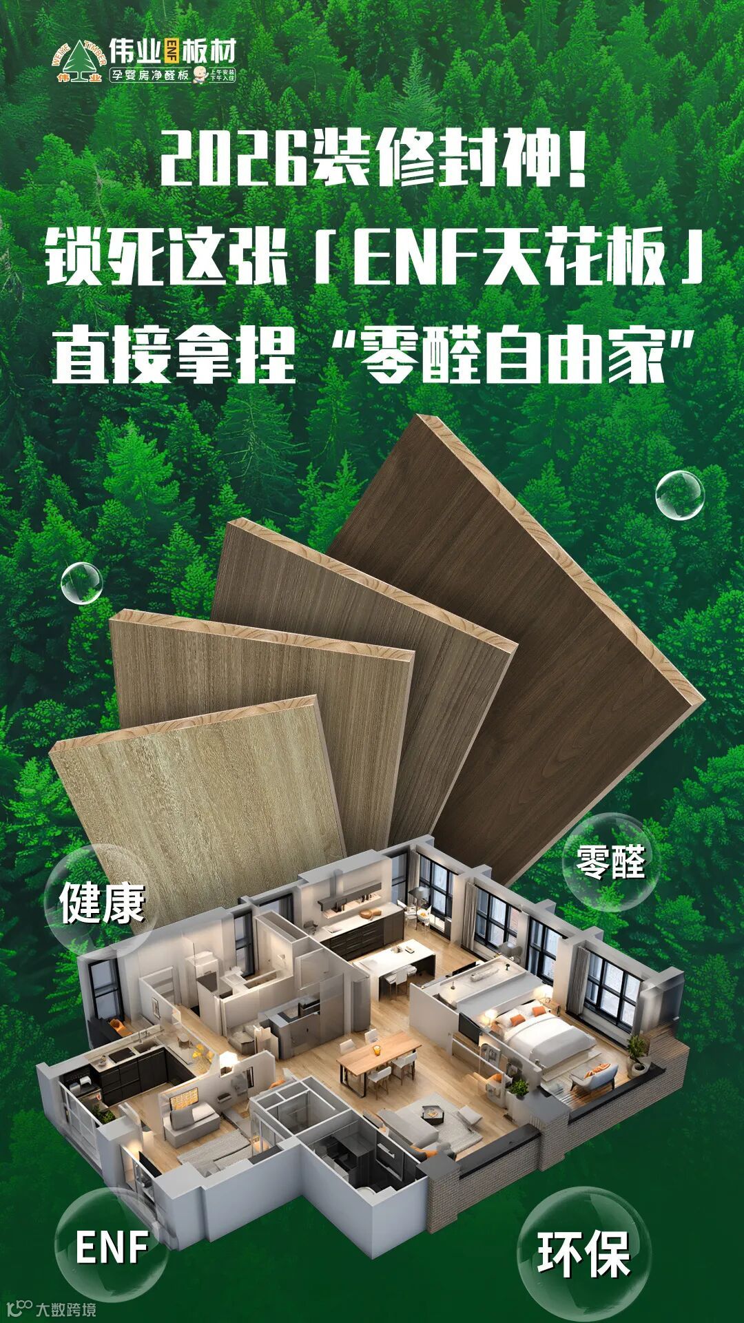 伟业ENF板材,用30年品牌硬实力背书,以“环保天花板标准+全品类覆盖+颜值暴击”三重buff,成为绿色家装的“闭眼入”之选。选伟业,就是给装修按下“甲醛屏蔽键”,让新家真正成为“治愈系安醛港湾”!
