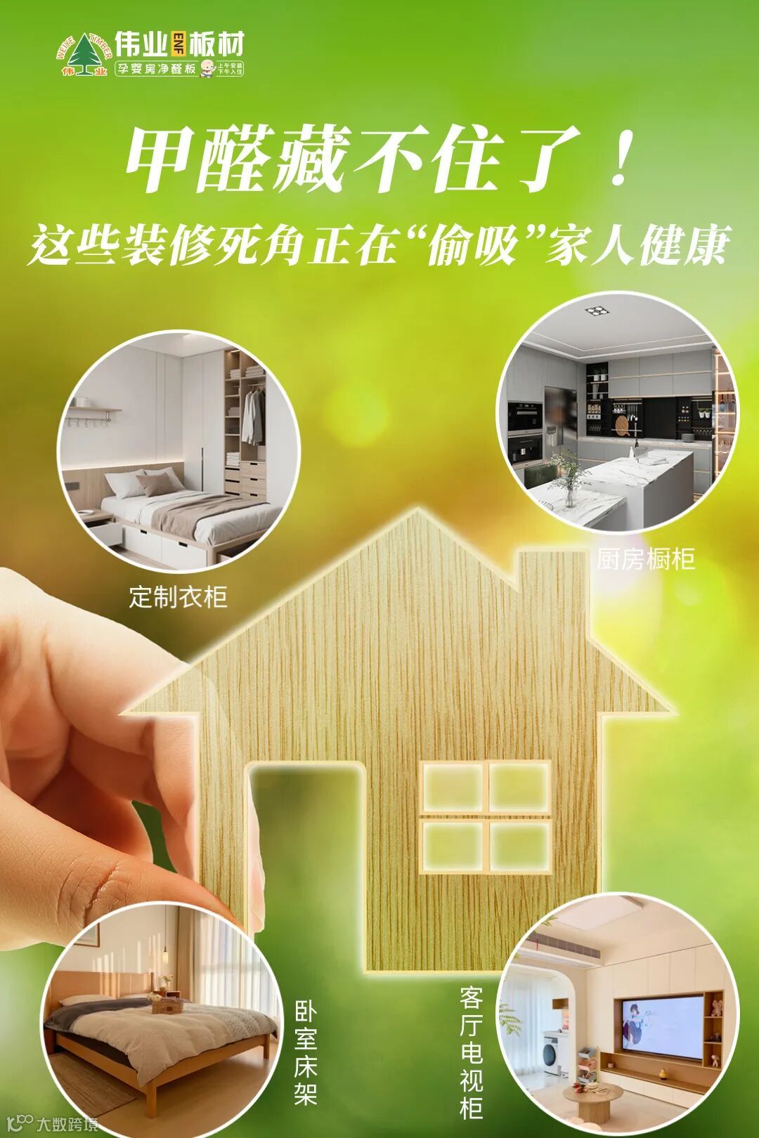 而这个刺客的藏身地,正是你每天亲密接触的各类板材:定制衣柜、厨房橱柜、卧室床架、客厅电视柜……只要生产时用了含醛胶黏剂,就可能变成持续“吐毒”的源头。这些看不见摸不着的有害物质,正悄悄侵蚀家人的呼吸健康,把本该治愈的家,变成暗藏危机的“隐形雷区”。