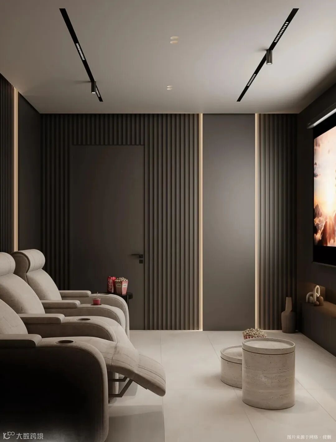 ▼影音室:强隔音隔干扰,42dB降噪如影院;强定型吊顶稳挂音响,打造专业视听体验。
