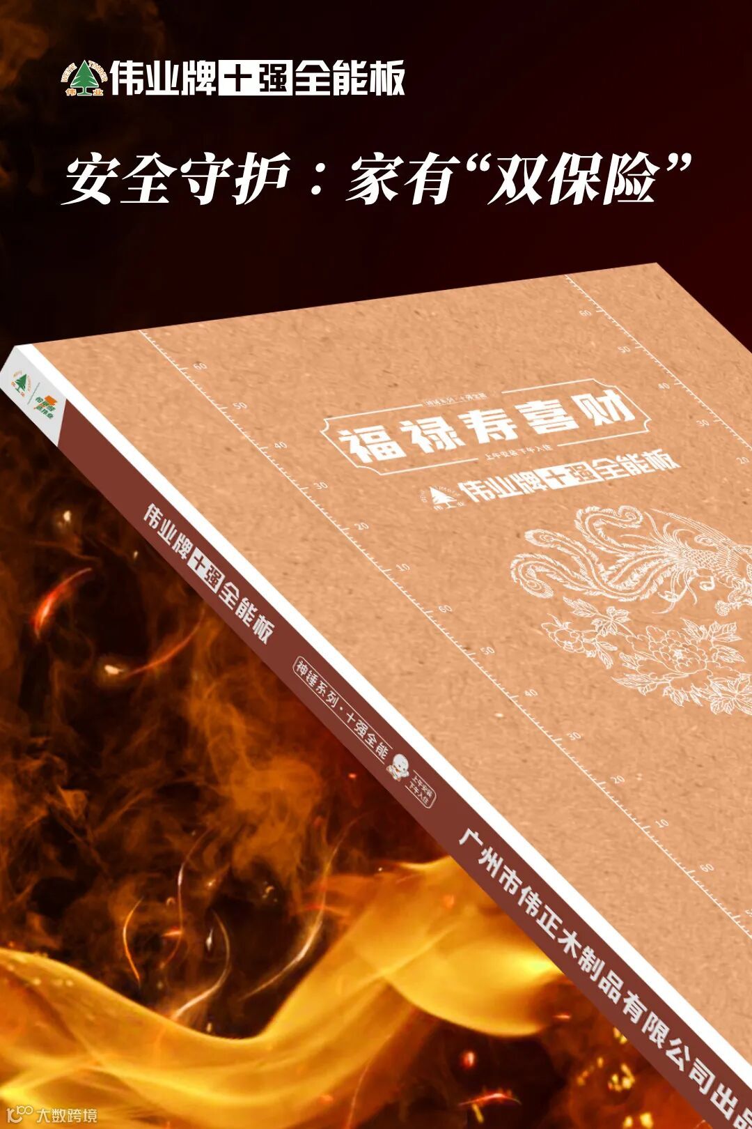 火灾隐患需警惕,伟业十强全能板“复合耐火结构”发力:高纯度脱硫石膏遇火释水降温,搭配浸胶耐火纸与玻璃纤维布,耐火极限1-4小时,是普通石膏板的2-8倍,厨房、卧室用着更安心。