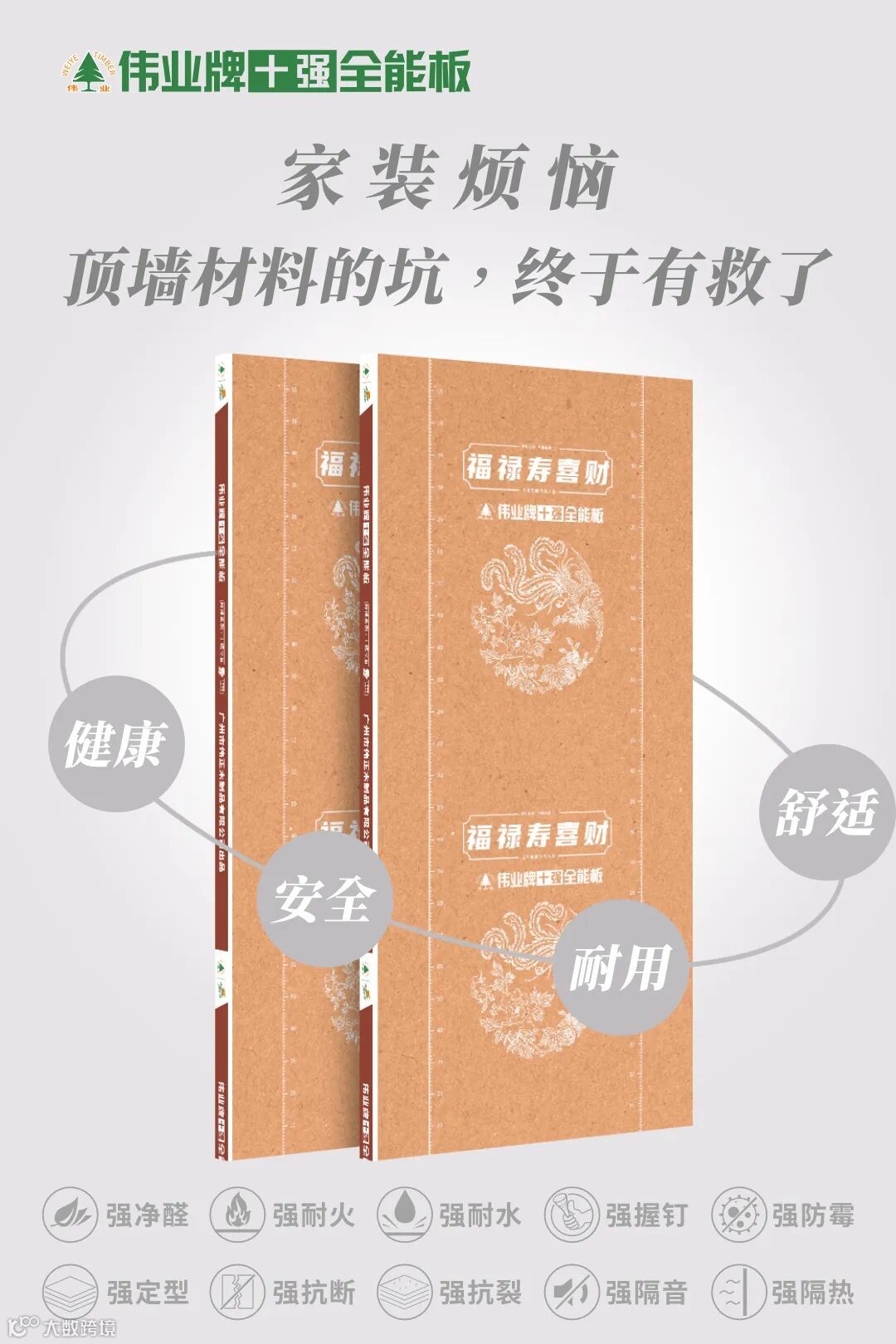 这些问题根源在顶墙材料,而伟业十强全能板以“一板十强”实力,为家筑起“安全防线”,杜绝修修补补的麻烦。