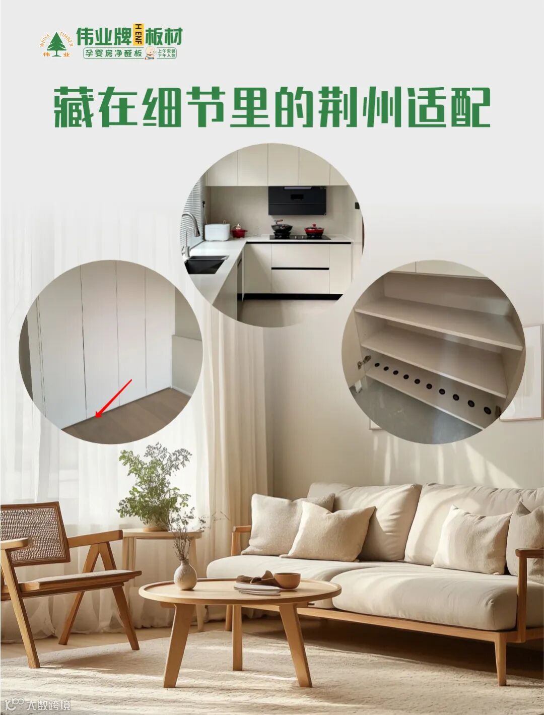 针对荆州“半年雨、半年晒”的气候,伟业牌板材给出不同空间、专属板材的方案: