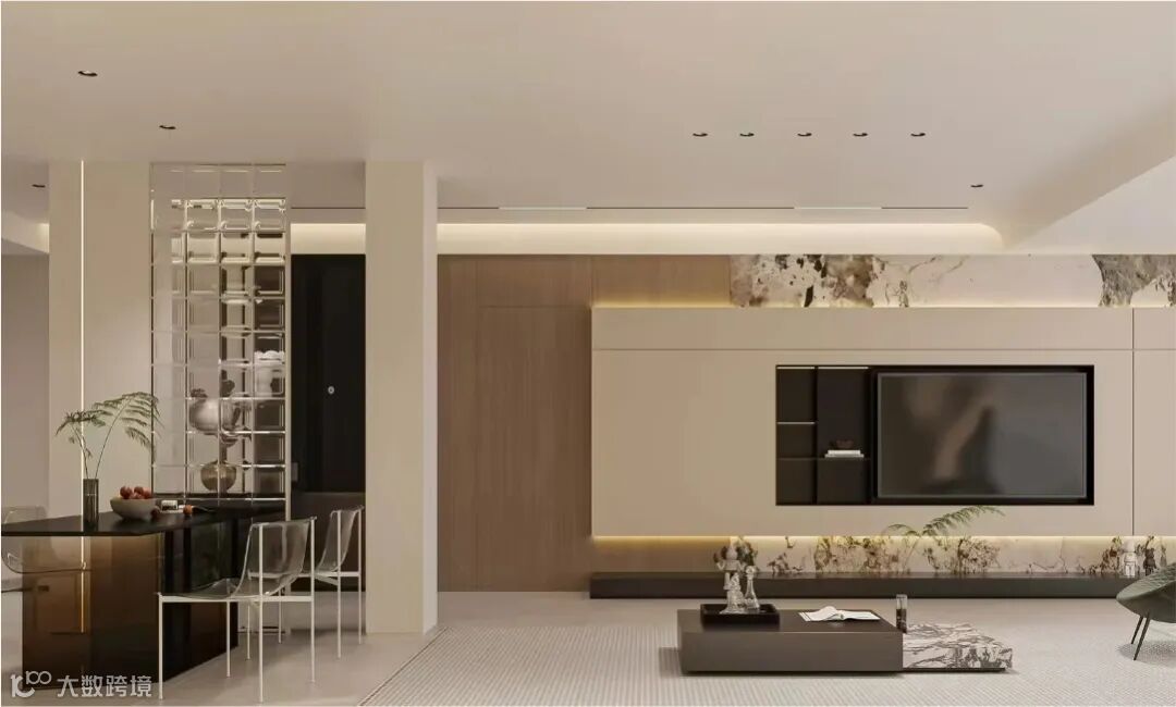 ▲江景房的客厅,用“原木色护墙板+长虹玻璃隔断”,让阳光透过HENF板材的纹理,映出长江的波光,既保留楚式家居的温润,又透着现代感。