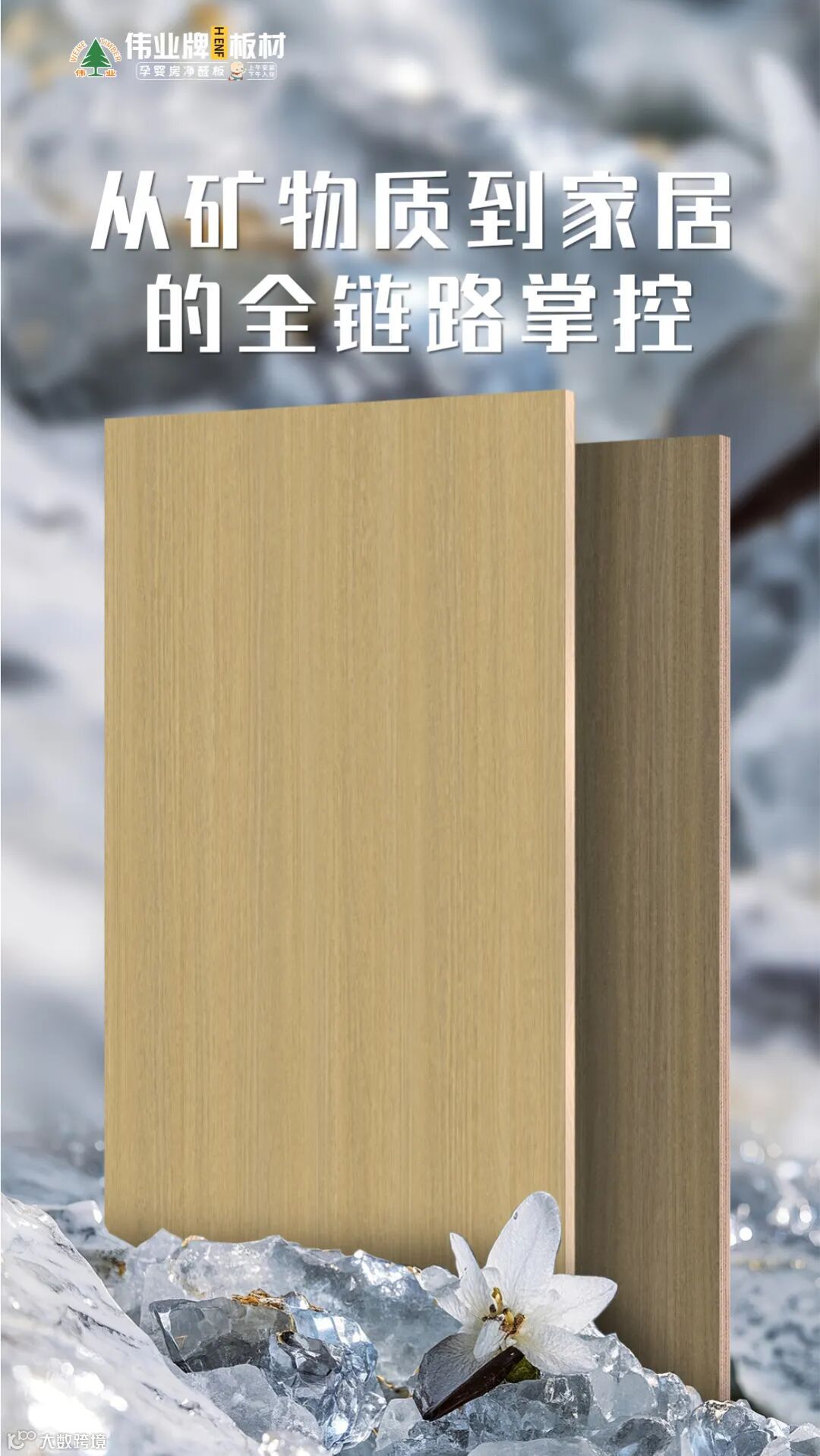 ▲别人卖板材,伟业牌板材在“炼胶”——自主研发的无机生态胶,把地壳里的硅、钙矿物经1350℃高温熔炼成胶,像岩石粘合般稳固。