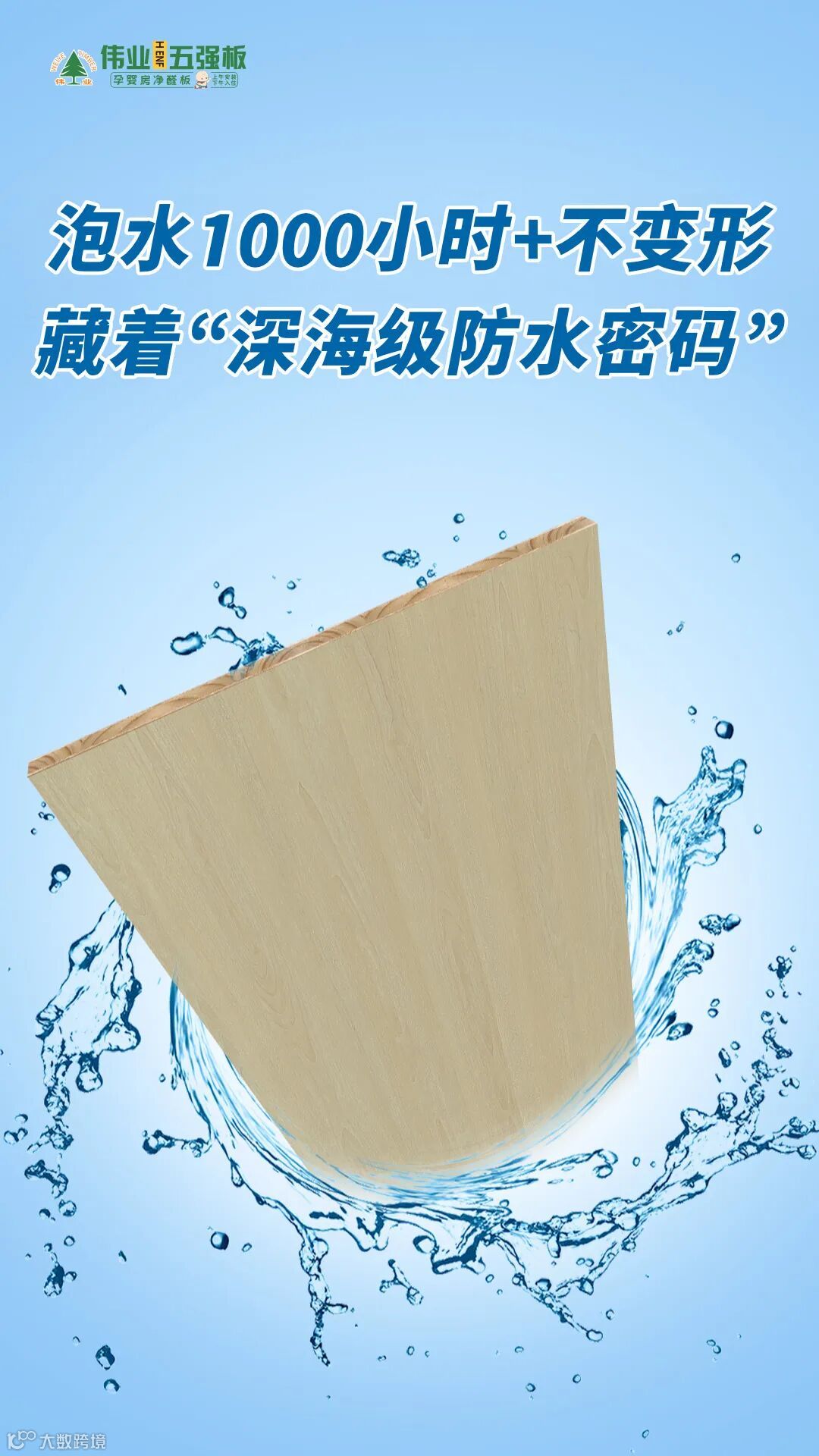 ✅二类防水,实测碾压:在广州台风模拟实验室,伟业五强板浸泡1000小时(相当于台风天泡水10天),膨胀率≤0.3%(国标允许≤12%),擦干后柜门开关顺滑,五金件纹丝不动;