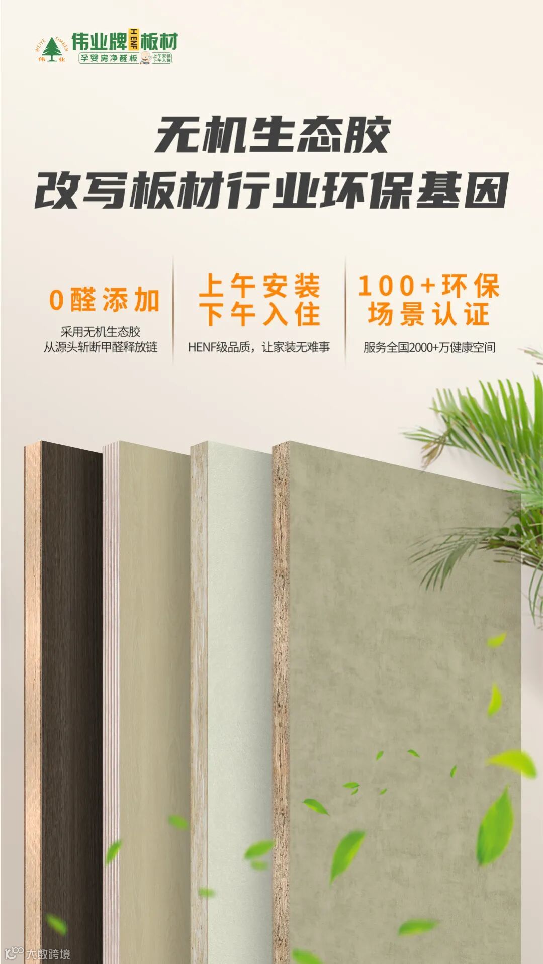 一块板材的环保,决定一个家庭三代人的健康。环保不是口号,而是选择;健康不是运气,而是实力。伟业牌HENF板材以无机生态胶重构行业标准,用超越ENF级的硬核实力,真正用“母婴级”环保标准,为千万家庭筑起绿色防线。