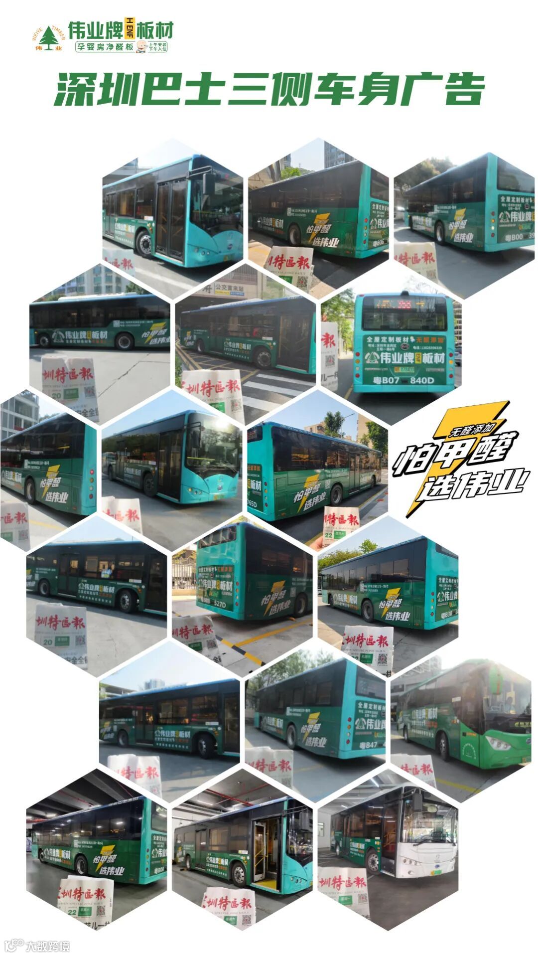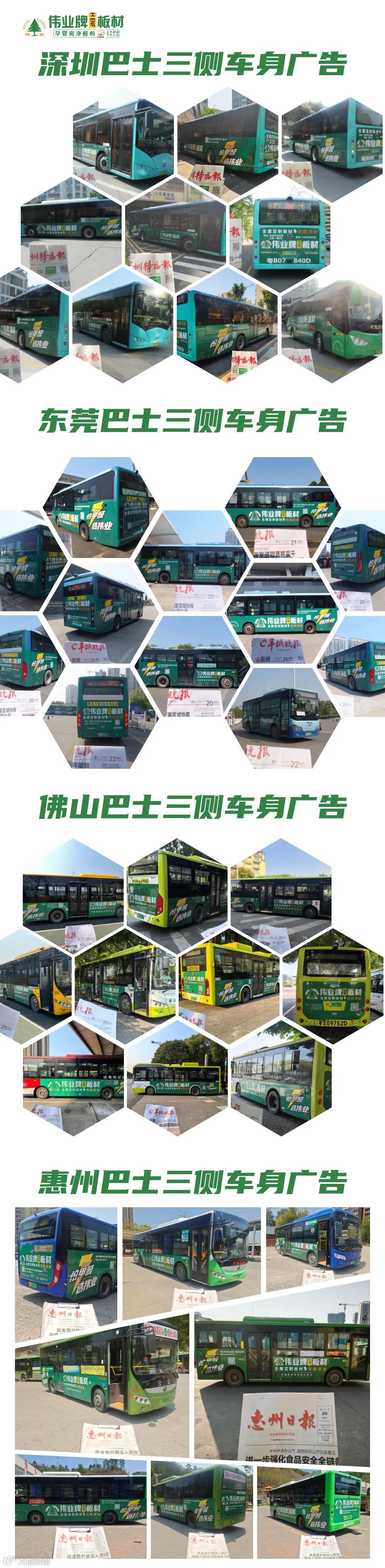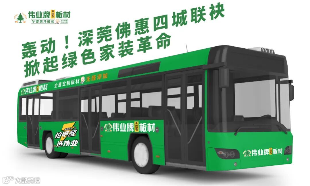 在这个春意盎然的春天,伟业牌HENF板材公交车体广告同步在深圳、东莞、佛山、惠州四城,百辆公交车搭载着“怕甲醛,选伟业”的广告语,穿梭于珠三角的街头巷尾,不仅是一次营销事件,更是一场关乎生命质量的绿色革命。