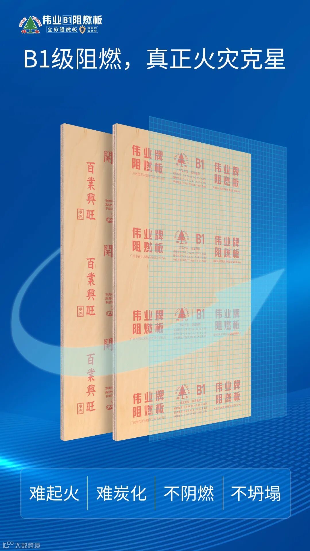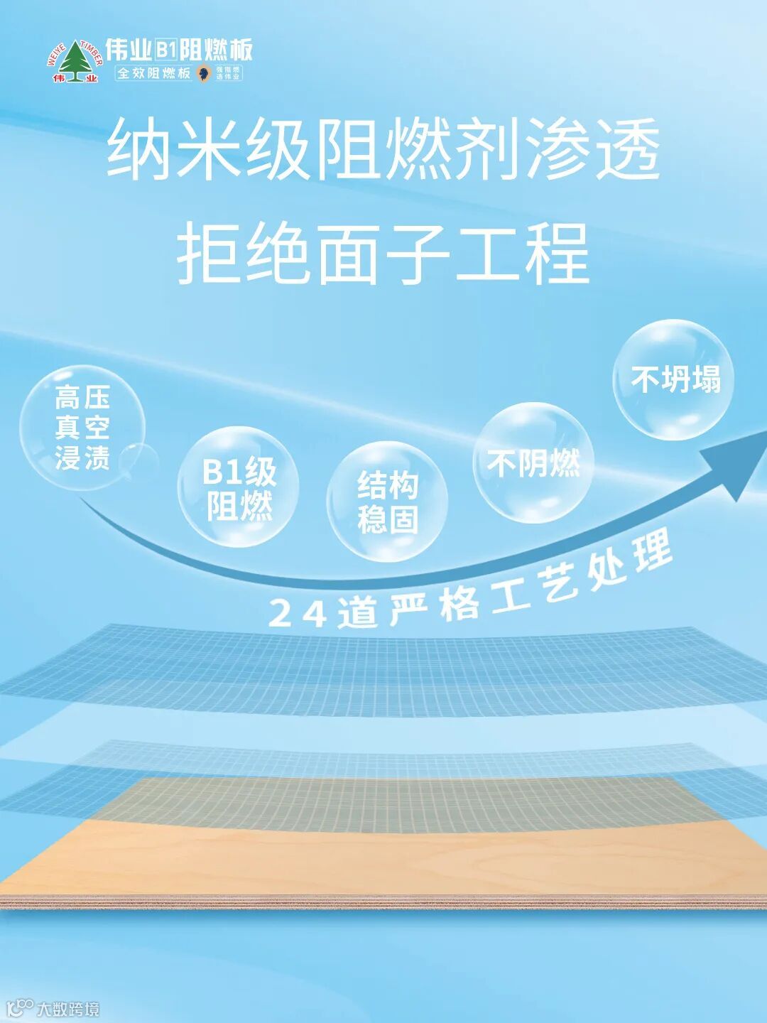 阻燃板领域:当行业还在困于 “防火阻燃” 的技术瓶颈,伟业牌阻燃板用 “颠覆式创新” 打破认知!采用纳米级渗透工艺,实现B1级硬核阻燃,不燃不蔓,大大降低火灾发生时的危险系数,为广大用户构建生命和财产安全屏障。