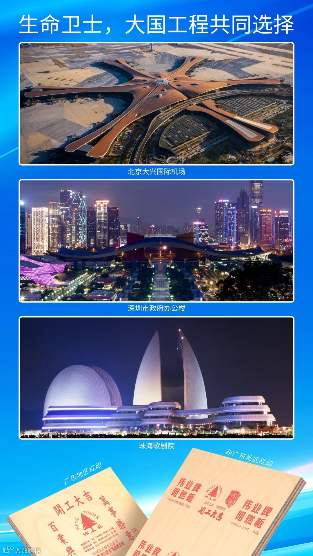 能征服国家级项目的板材,才是真王者!北京大兴国际机场、北京冬奥会冰壶馆、深圳市政府办公楼、珠海会展中心…… 在这数千个标杆项目中,伟业阻燃板用 "生命卫士" 的担当,将 "防火安全" 刻入每一座城市的基因。这些大国工程的选择,就是对伟业牌阻燃板实力的最佳背书。