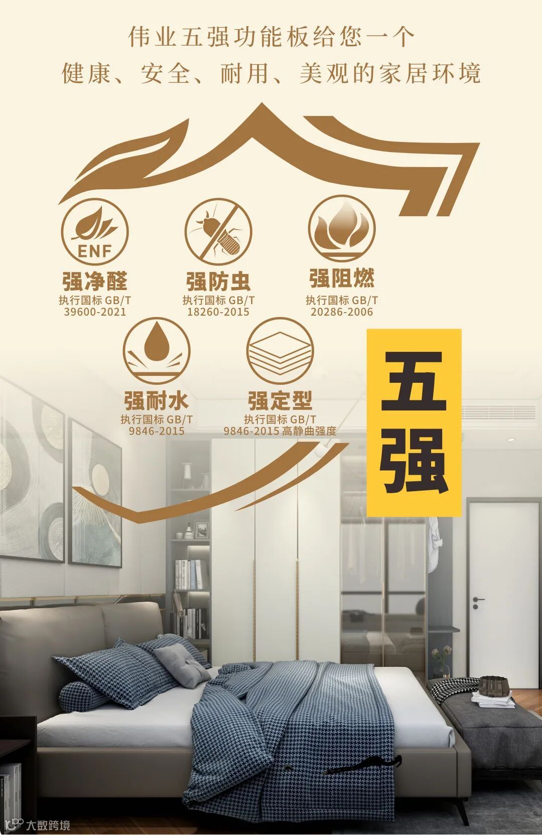伟业五强功能板以五项全能的优势,轻松解锁了家居装修的超能力。选择伟业五强功能板,就是选择了一个健康、安全、耐用、美观的家居环境。