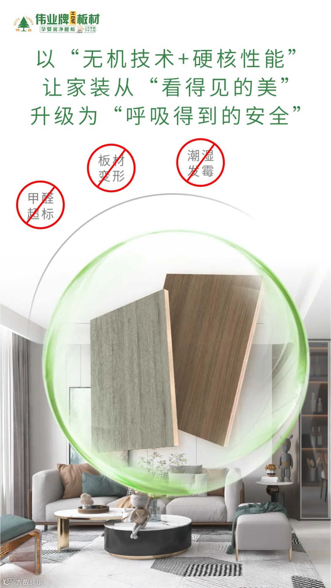 装修是一场关于幸福的投资,但当甲醛超标、板材变形、潮湿发霉等问题频发时,“家”却可能成为威胁健康的隐形杀手。尤其对于母婴家庭、过敏体质人群,每一口呼吸都牵动人心。伟业牌HENF板材,以“无机技术+硬核性能”,让家装从“看得见的美”升级为“呼吸得到的安全”。