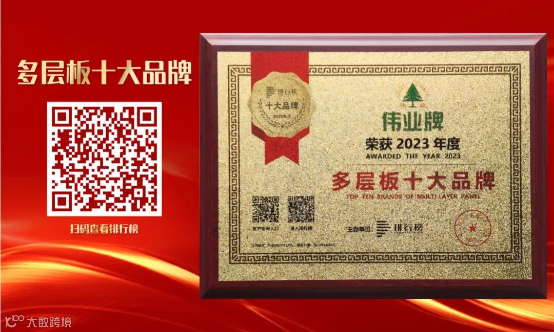 近日,由排行榜123网主办的年度的十大品牌评选活动落幕,伟业牌ENF板材实力摘得两大奖项,分别斩获了多层板十大品牌、家具板十大品牌,实至名归!