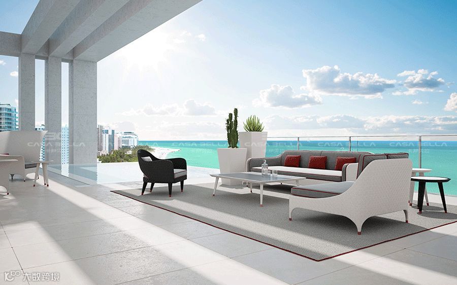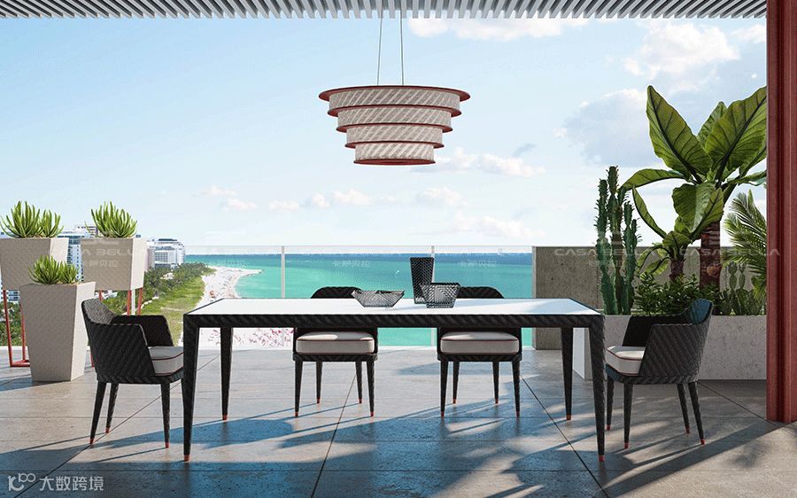 看似随笔,其实 Cipriani Homood 主笔设计师花费了近8个月时间,穿透迈阿密才最终完稿,从产品设计、色彩搭配、户外材质应用及适合放松的人体工学等方面进行大量的推敲和组合,甚至连花器、饰品及地毯的户外功能性搭配都一应俱全,立体还原迈阿密海滩的度假情境,直接把迈阿密沙滩搬回家,随时与家人分享惬意和自由。