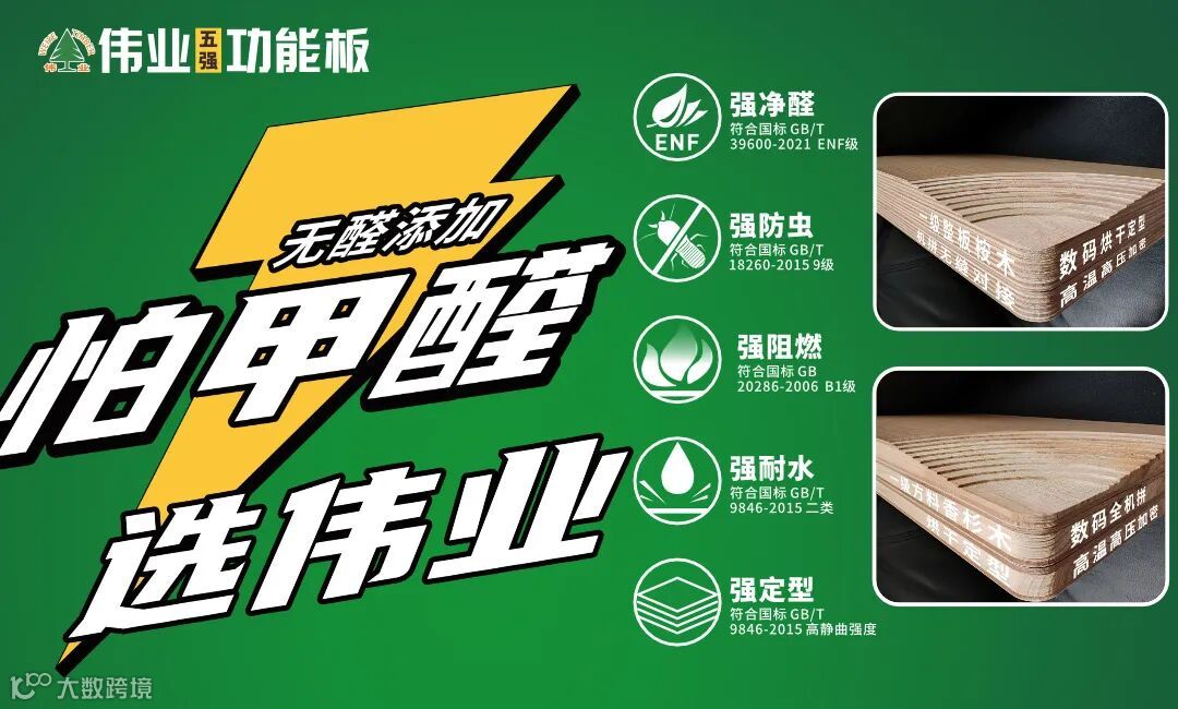 此次发布的伟业五强功能板产品,聚焦家具板材产品痛点:甲醛多、易虫蛀、易燃烧、易膨胀、易变形等家装问题,对比普通家装板材,更具5重优势:强净醛、强防虫、强阻燃、强耐水、强定型,产品性能堪称强悍!