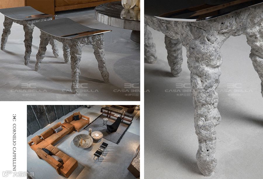 如果说对于树脂的艺术升华算是一种“圈内玩法”,那么对于混凝土的大胆介入,是不是可以称之为“跨界弄潮”?Cornelio Cappellini 将粗糙与细致的强对比设计带入生活,不冲突,反而浑然天成。