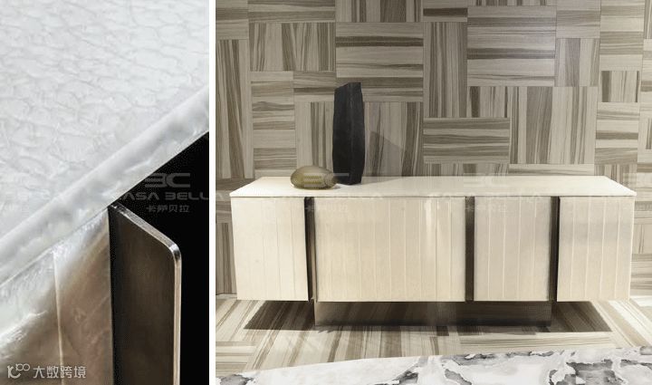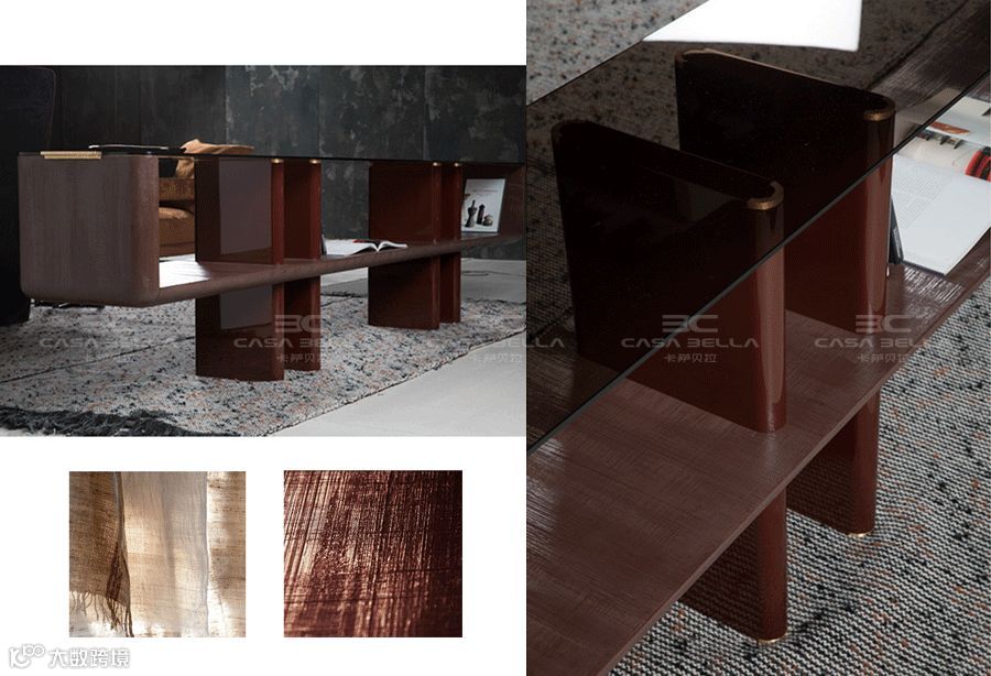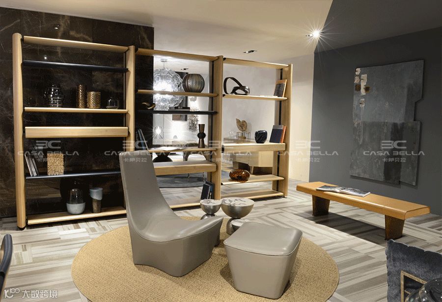 在国内的室内陈设中,其实大部分的人还是比较守旧,按部就班的客厅、餐厅、卧室,千篇一律的静态布局。而今大平层豪宅越来越成为热点,打破传统空间划分的局面势在必行,于是 Cornelio Cappellini 此次推出了 Bridge 系列,它是电视柜?是玄关柜?是沙发背的书架?你说的算。棉麻布纹的漆面处理与高光漆搭配,顶级金属件的点缀,层次分明,吸人眼球。