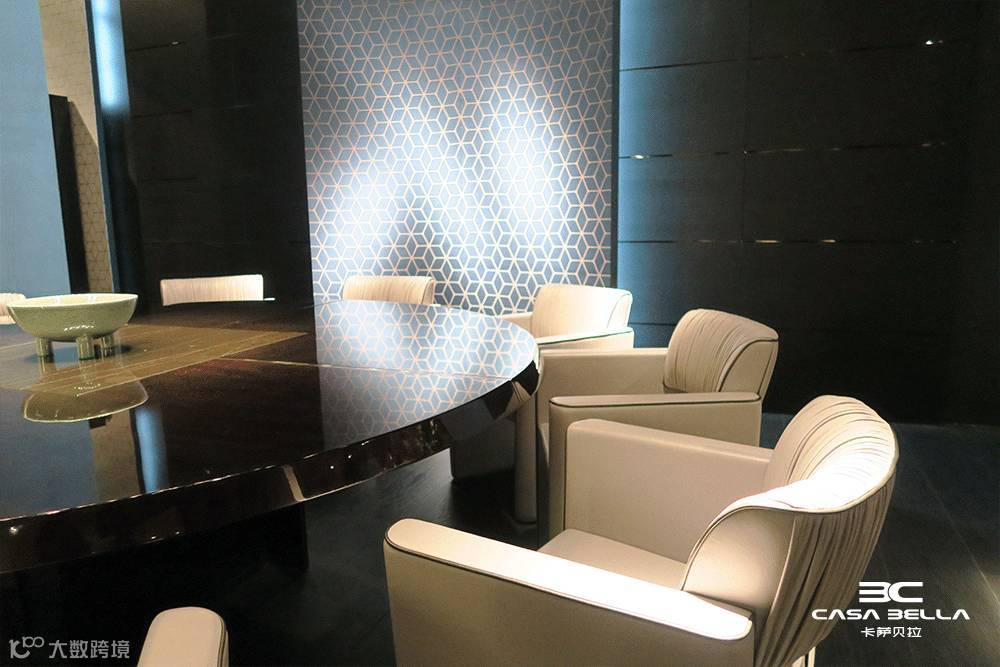 现代家具品牌中,MALERBA近几年追捧热度高涨,去繁从简的设计颜值备受越来越多的年轻贵胄青睐。你很难再去掉MALERBA多余的元素,从整体的版式设计、材质选料、色彩应用、软装搭配等等,不多不少,恰如其分。类似Tiffany蓝的形式与简洁的黑色、灰色相组合,甚至隐藏在酒柜内部,或是写字台一侧的储物空间内,与家具本身形成强烈的反差。