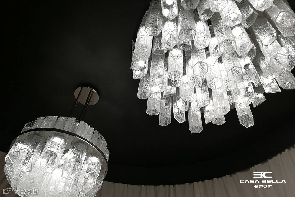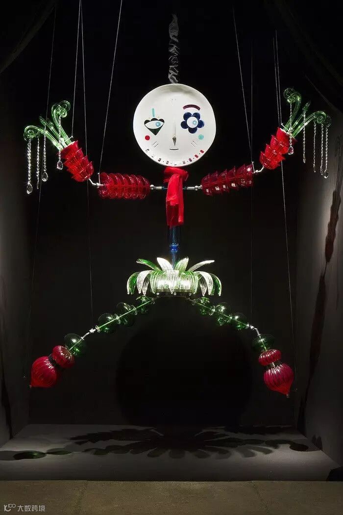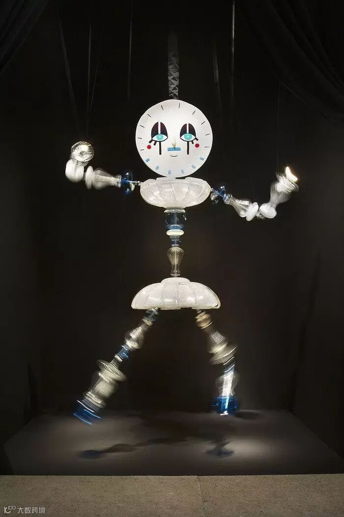 喜爱以「梦境」构思陈述作品灵感的 Marcel Wanders,这次总算找到机会向 Barovier & Toso 如此经典的工艺好好致敬一番,除了体现 Marcel Wanders 自身对 Barovier & Toso 品牌风格的理解,也是展现 Barovier & Toso 每盏灯具背后,就连组件构造也令人惊呼连连的工艺技巧。一盏盏大型的水晶吊灯上端,各别串上一道道画上马戏团脸谱的圆形瓷器,使得这些水晶灯彷彿具有生命力般,赋予上鲜明的面孔。
