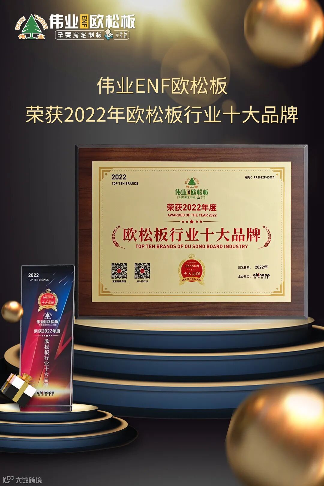 为了发掘更多优质品牌,助力优秀企业发展,品牌网主办了“2022年欧松板行业十大品牌”评选活动,伟业ENF欧松板入选“2022年欧松板行业十大品牌”!